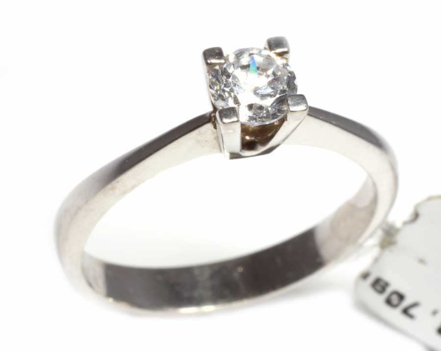 Pırlanta tek taş yüzük 18 ayar altın madeninden üretilmiştir. Yüzük üzerinde 1 adet 0,30 karat ağırlığında H renk VVS berraklığında beyaz pırlanta taş mevcuttur. Tektaş yüzük 3,7 gram ağırlığındadır. Sertifika için bizimle iletişime geçebilirsiniz.
