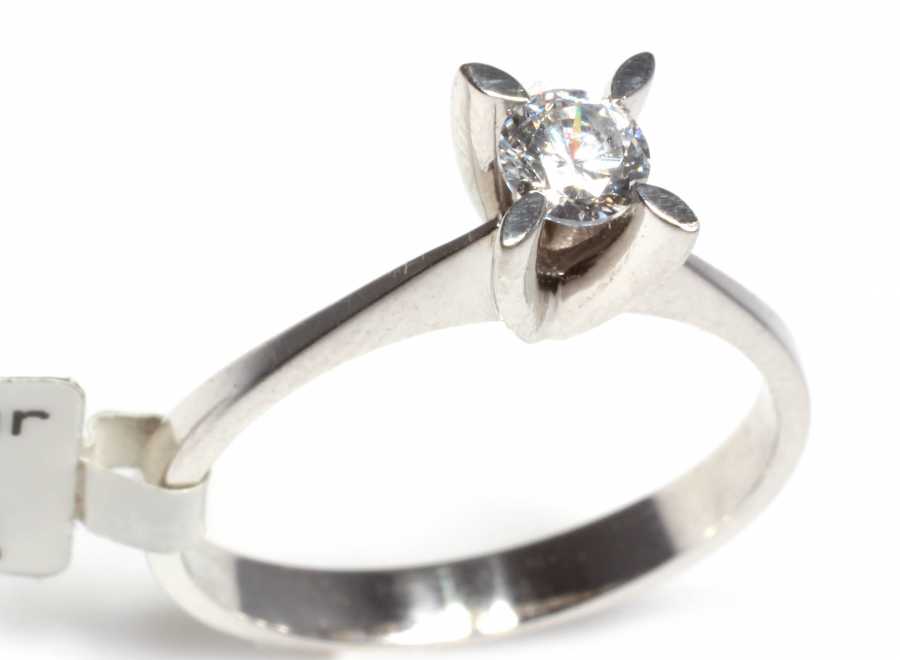 Pırlanta tek taş yüzük 18 ayar altın madeninden üretilmiştir. Yüzük üzerinde 1 adet 0,35 karat ağırlığında I renk VVS berraklığında beyaz pırlanta taş mevcuttur. Tektaş yüzük 3,39 gram ağırlığındadır. Sertifika için bizimle iletişime geçebilirsiniz.
