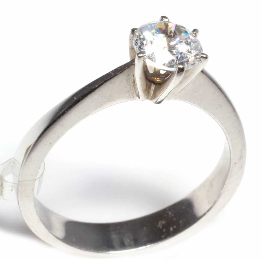 Pırlanta tek taş yüzük 18 ayar altın madeninden üretilmiştir. Yüzük üzerinde 1 adet 0,80 karat ağırlığında G renk SI berraklığında beyaz pırlanta taş mevcuttur. Tektaş yüzük 3,91 gram ağırlığındadır. Sertifika için bizimle iletişime geçebilirsiniz.