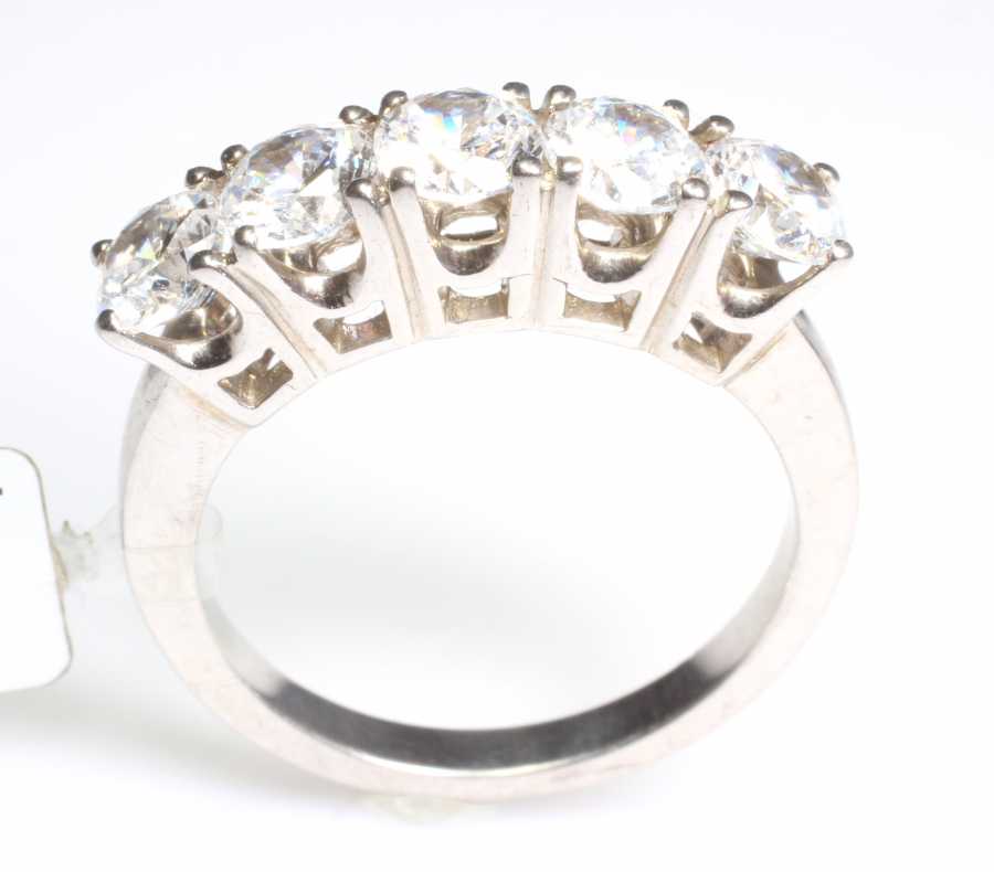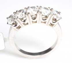 Beştaş yüzük 18 ayar altın madeninden üretilmiştir. Yüzük üzerinde 5 adet 1,00 karat ağırlığında G renk SI berraklığında beyaz pırlanta taş mevcuttur. Beş taş yüzük 5,76 gram ağırlığındadır. Sertifika için bizimle iletişime geçebilirsiniz.