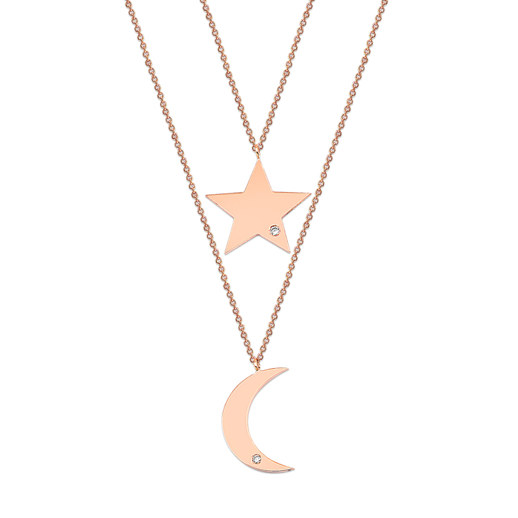 Ay ve yıldız model kolye 14 ayar altın madeninden üretilmiştir. Kolye üzerinde 0,08 karat ağırlığında pırlanta taş mevcuttur. Kolye zinciri 42 cm uzunluğundadır. Kolye 4,7 gram ağırlığındadır.