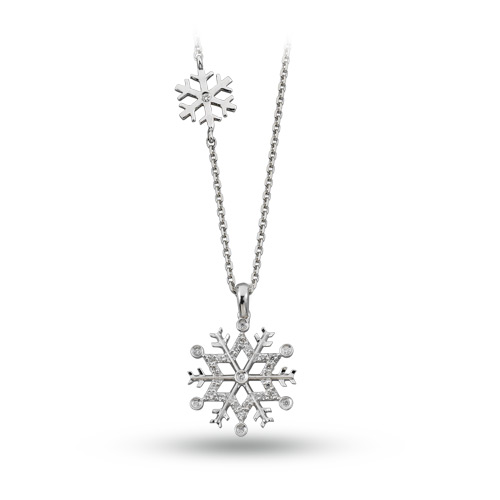 Kar tanesi model kolye 14 ayar altın madeninden üretilmiştir. Kolye üzerinde 25 adet 0,08 karat ve 1 adet 0,01 karat ağırlığında H renk VS/SI berraklığında pırlanta taş mevcuttur. Kolye zinciri 42 cm uzunluğundadır. Kolye 4,14 gram ağırlığındadır.
