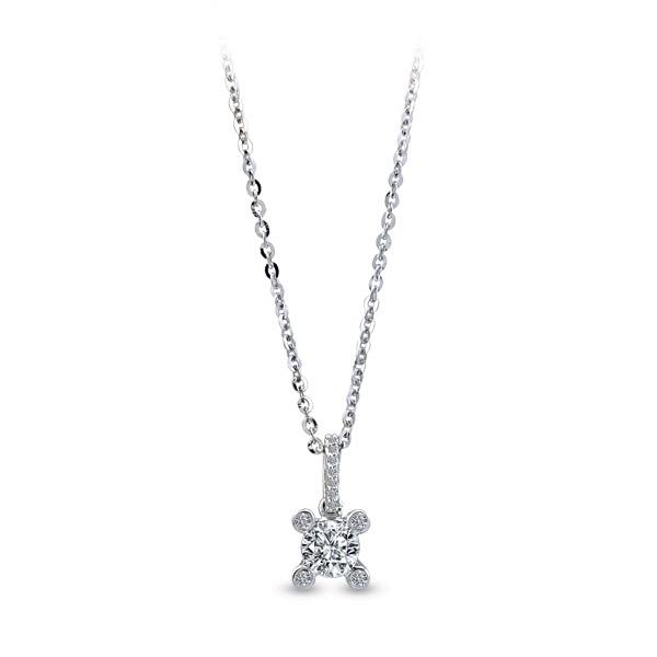 Tria model kolye 14 ayar altın madeninden üretilmiştir. Kolye üzerinde 1 adet 0,08 karat ve 7 adet 0,04 karat ağırlığında H renk VS/SI berraklığında pırlanta taş mevcuttur. Kolye zinciri 42 cm uzunluğundadır. Kolye 2,20 gram ağırlığındadır.