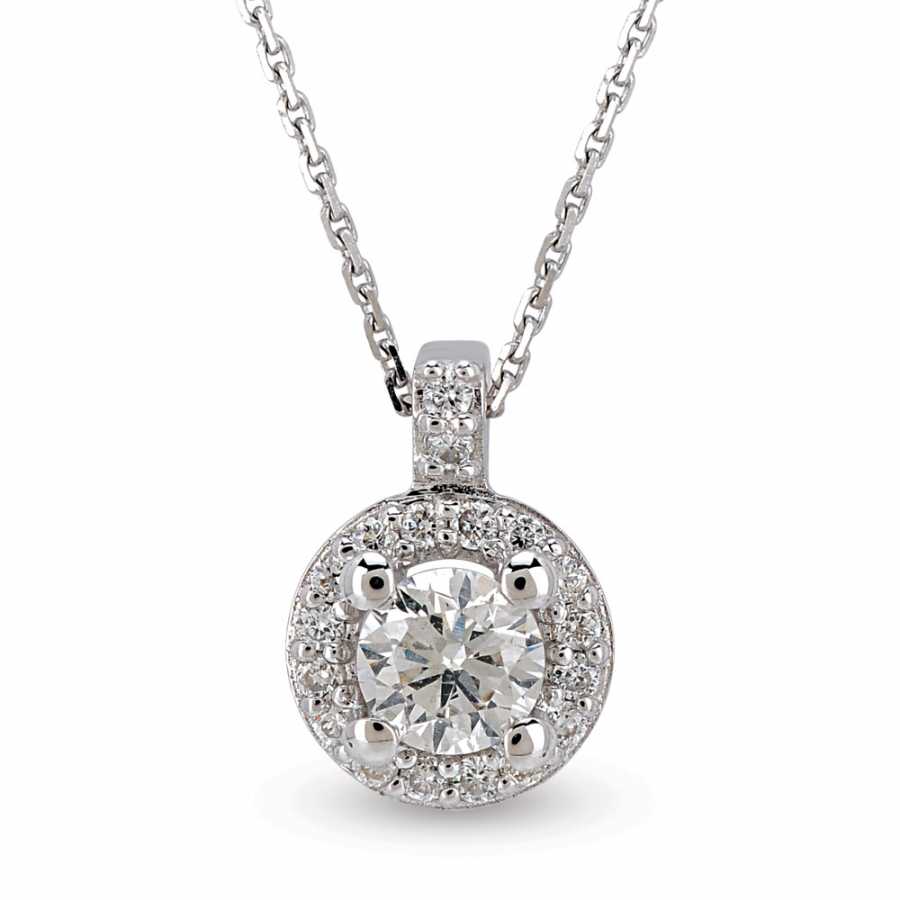 Tektaş model kolye 14 ayar altın madeninden üretilmiştir. Kolye üzerinde 1 adet 0,15 karat ve 18 adet 0,06 karat ağırlığında H renk VS2 berraklığında pırlanta taş mevcuttur. Kolye zinciri 42 cm uzunluğundadır. Kolye 2,86 gram ağırlığındadır.