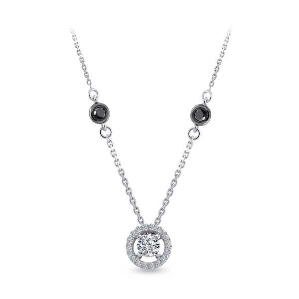14 ayar altındır.20 adet 0,16 ct ve 2 adet 0,10 ct siyah pırlanta H - VS/ SI rengi pırlanta taş kullanılmıştır. Kolye ucunun çapı: 0,7 cm Kolye zinciri dahildir. Gramı: 2,51 gr