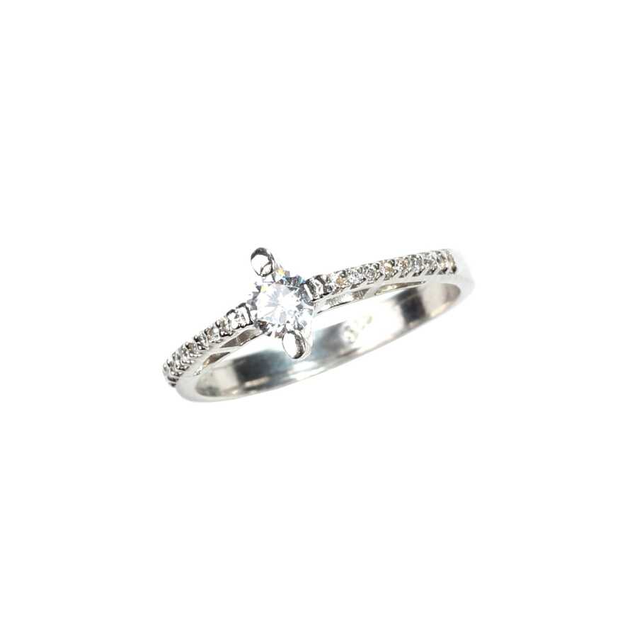 14 Ayar Altın 0,33 ct E Renk Yanları Taşlı Pırlanta Tektaş Yüzük