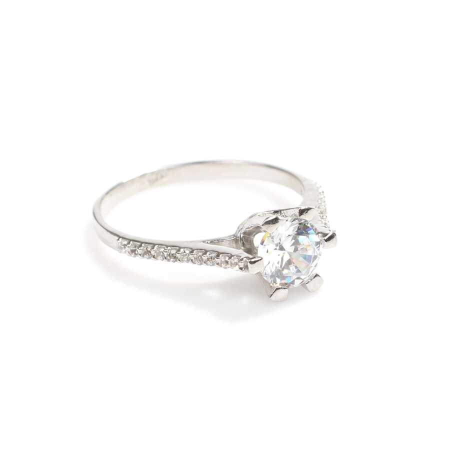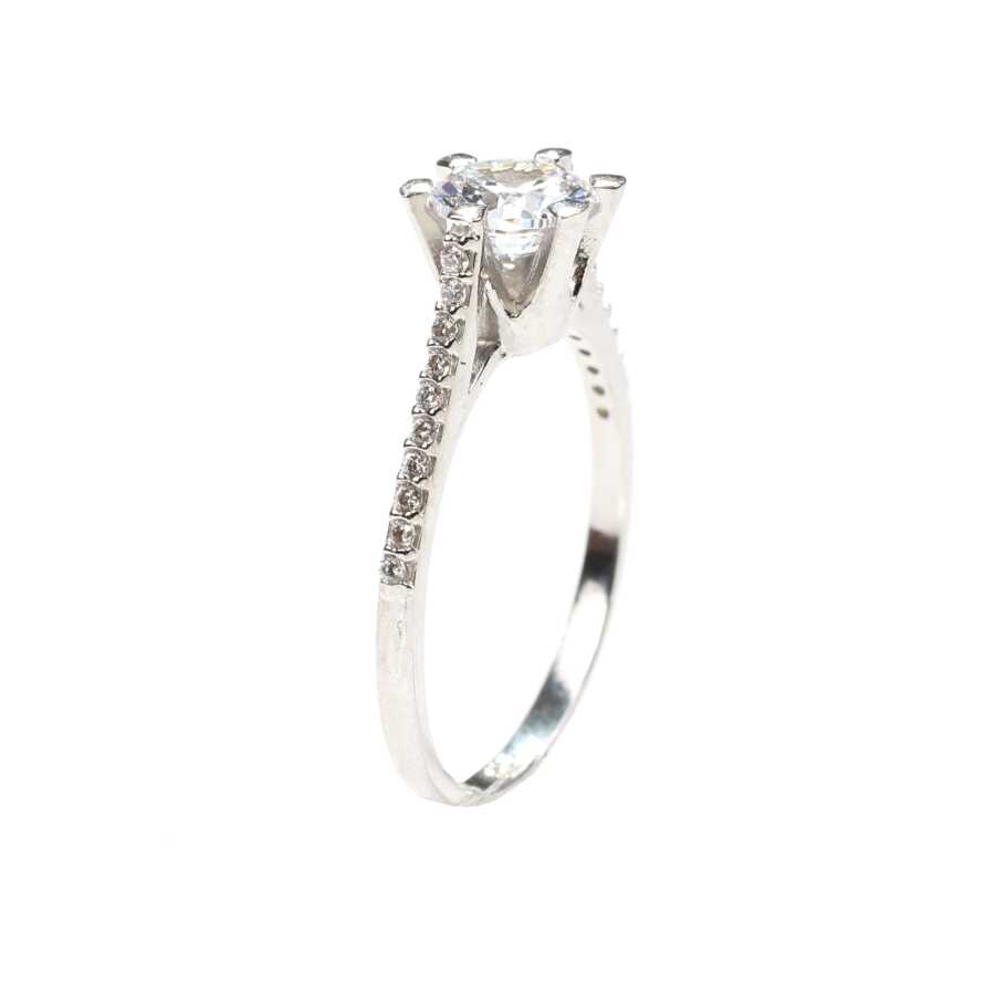 14 Ayar Altın 0,70 ct Yanları Taşlı Pırlanta Tektaş Yüzük