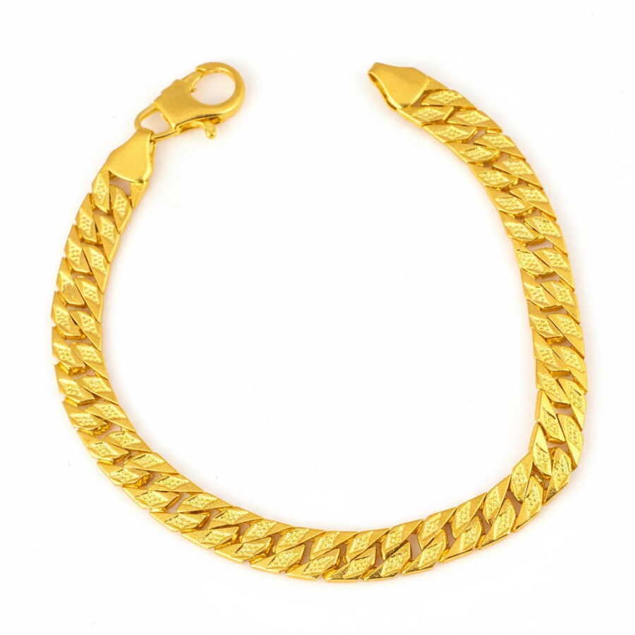 14 ayar altındır. Gurme zincir model bileklik 20 cm uzunluğundadır. Bileklik 0,9 mm'ye 0,7 mm boyutlarındaki desenli halkalardan oluşur. Altın bileklik 22,4 gram ağırlığındadır.