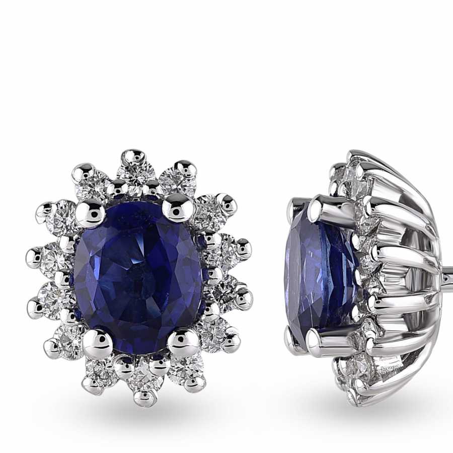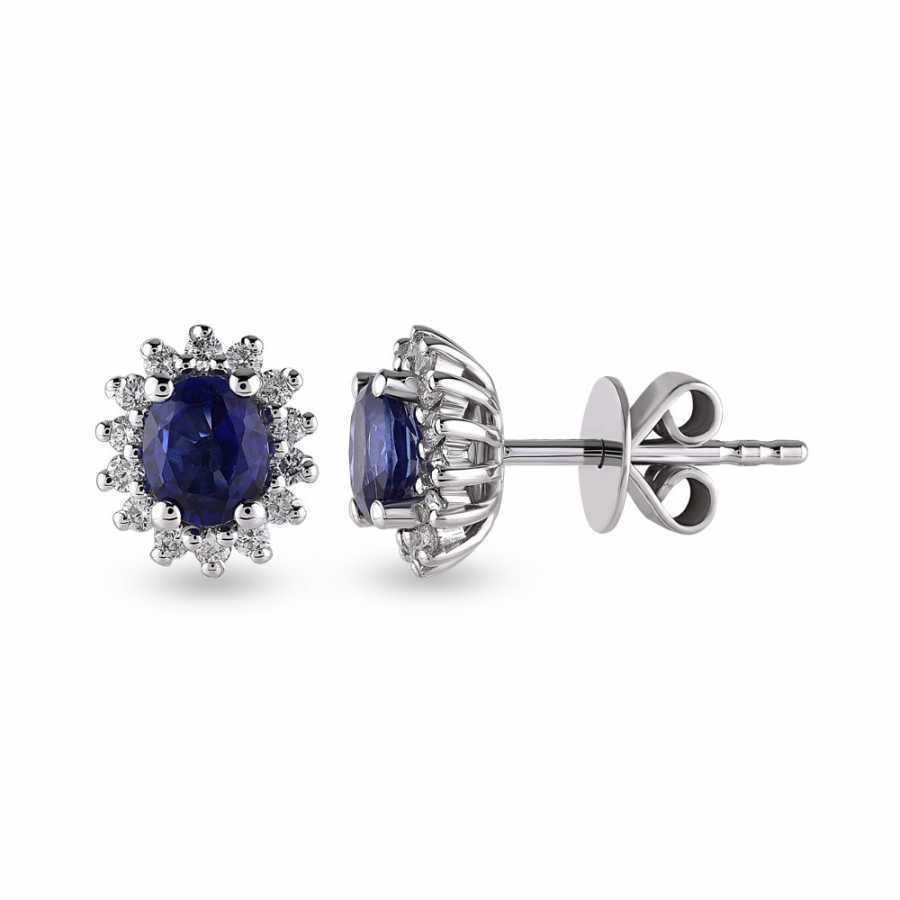 14 Ayar Altın 1,08 Karat Pırlantalı Safir Küpe