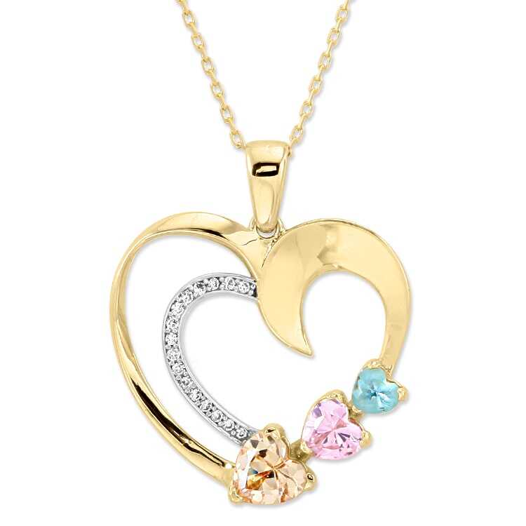 14 Ayar Altın Akuamarin, Pembe, Şampanya Taşlı Kalp Kolye