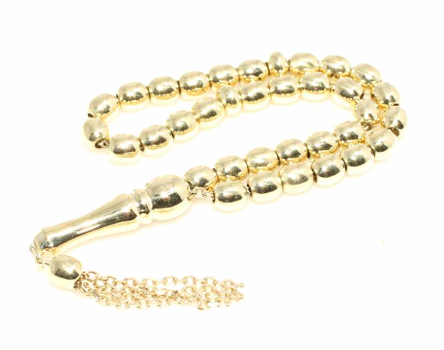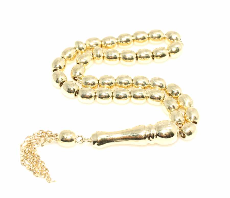 14 Ayar tesbih sarı renkli altın tesbih oval pres toplu parlak cilalı Gramı: 14,26 gr
