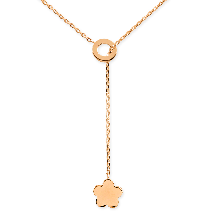 14 Ayar Altın Asansörlü Yonca Y Kolye, Pembe