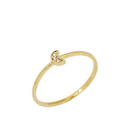 14 Ayar Altın Beyaz Taşlı Minik Ay Yüzük