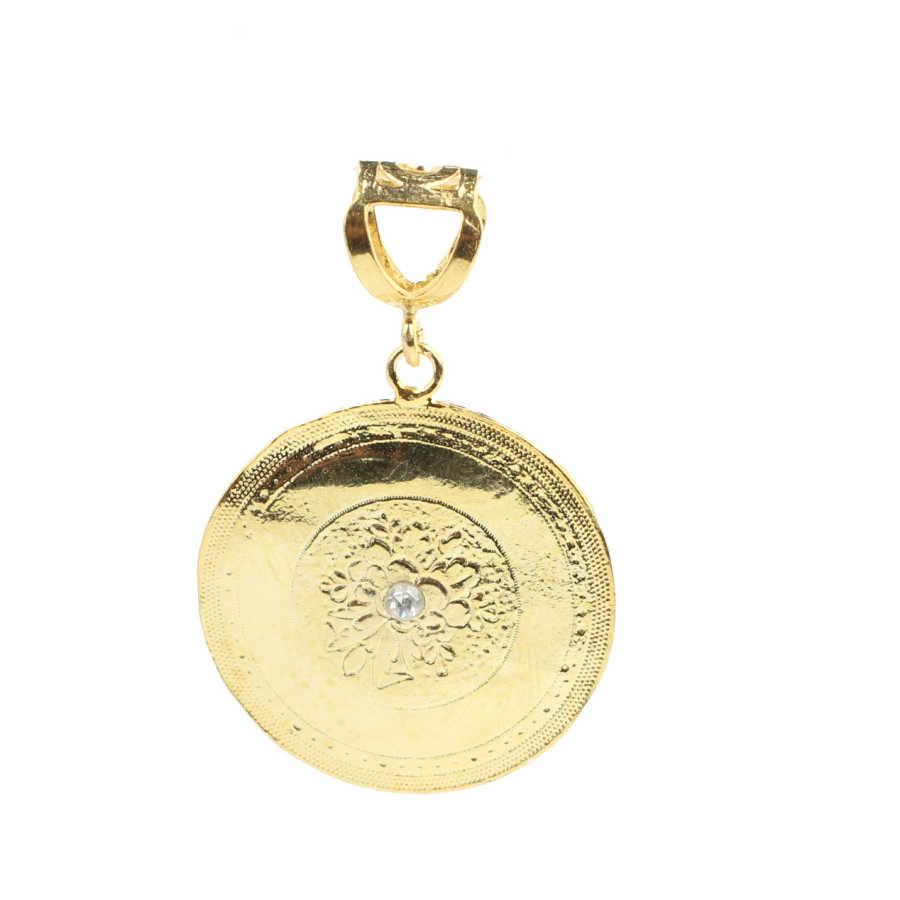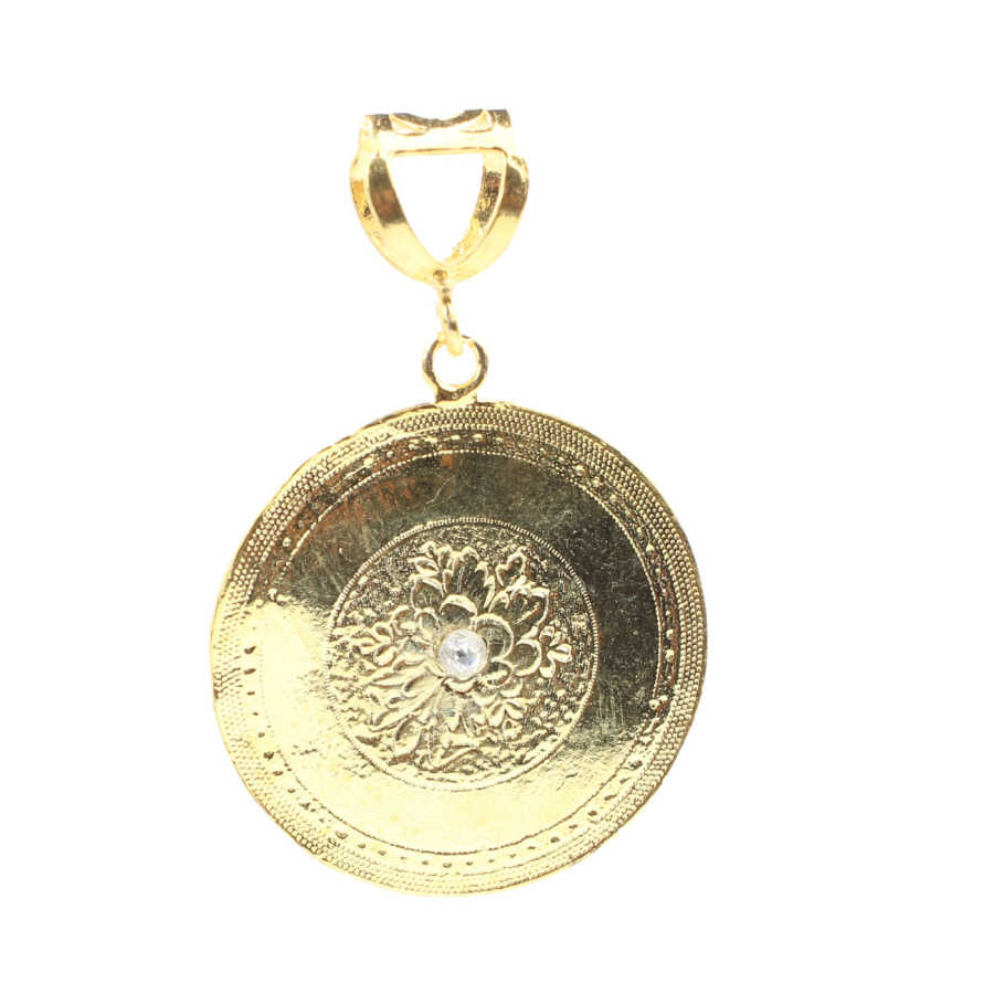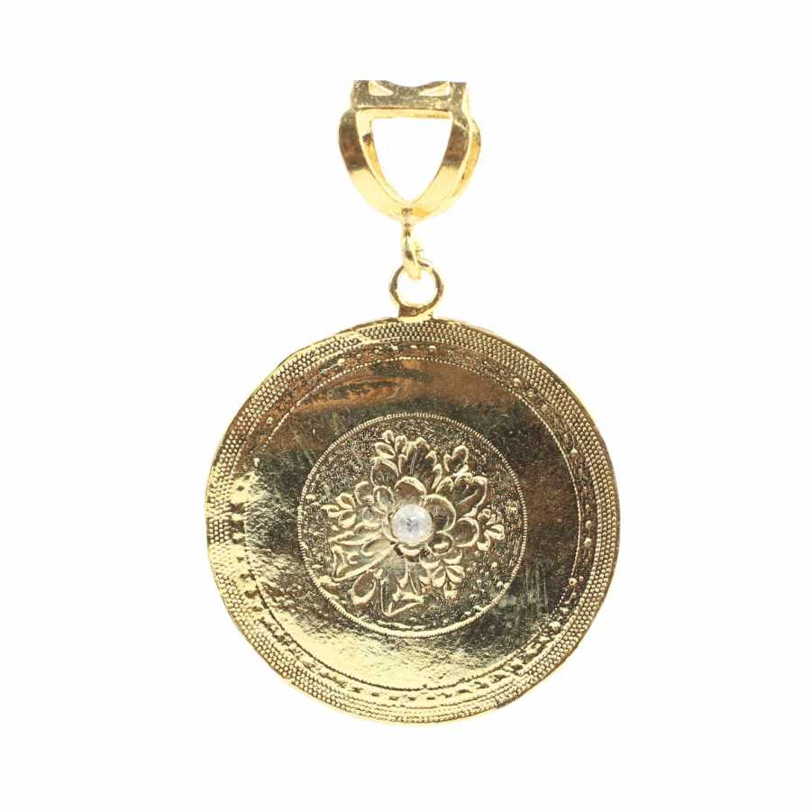 Notify me when its in stock Kolye ucu 14 ayar altından imal edilmiştir. Çiçek desenli madalyon kolye ucu halkası dahil 4,5 cm'ye 3,2 cm boyutlarındadır. Zincir dahil değildir. Kolye ucu zirkon taşlıdır. Kolye ucu 10,17 gram ağırlığındadır.