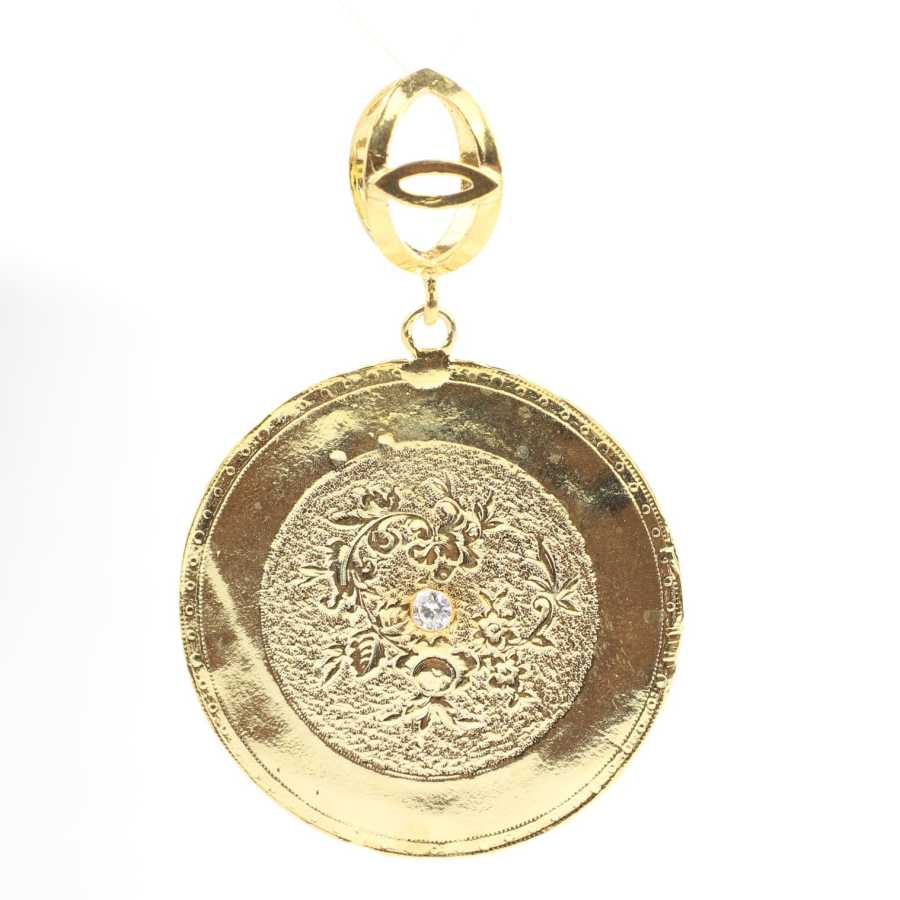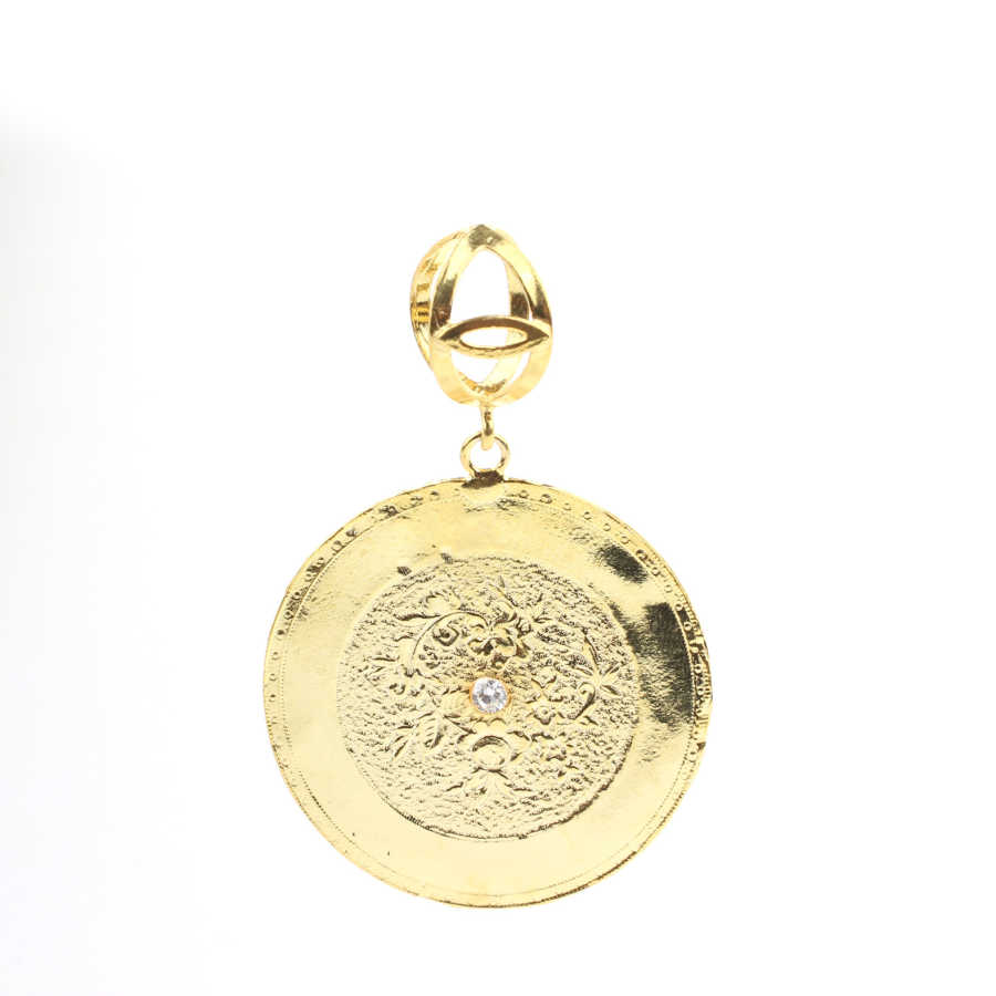 Notify me when its in stock Kolye ucu 14 ayar altından imal edilmiştir. Çiçek motifli madalyon kolye ucu halkası dahil 6,5 cm'ye 4,0 cm boyutlarındadır. Zincir dahil değildir. Kolye ucu zirkon taşlıdır. Kolye ucu 17,32 gram ağırlığındadır.