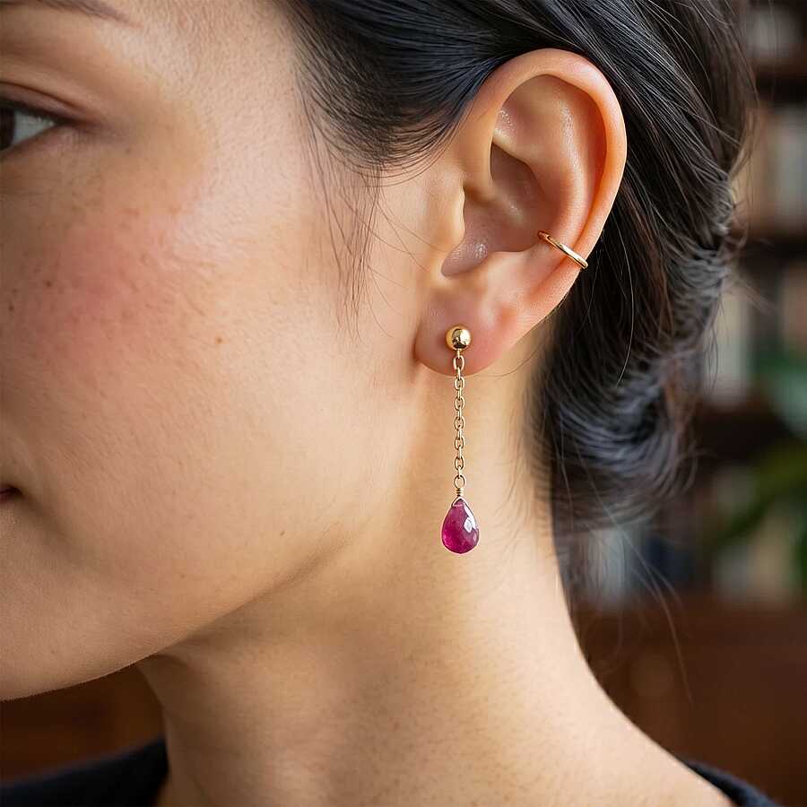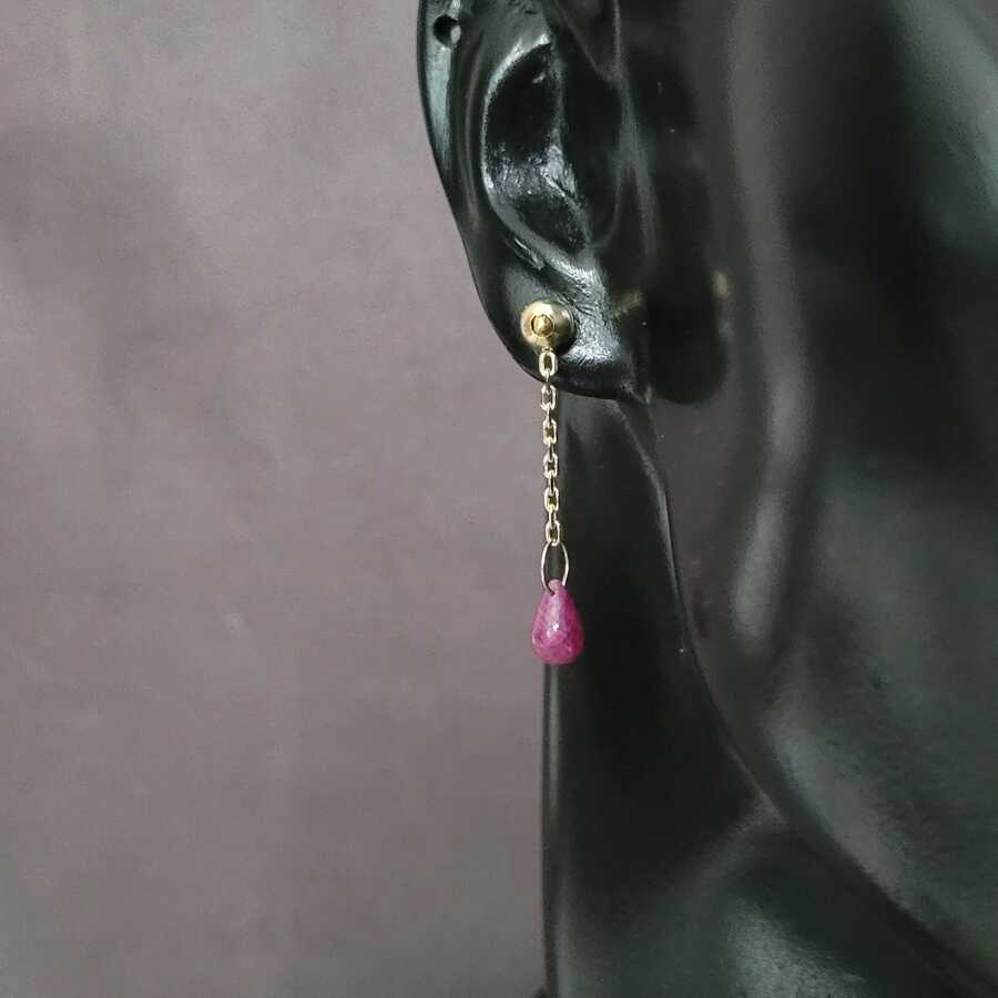 14 Ayar Altın Damla Yakut Taşlı Sallantılı Küpe