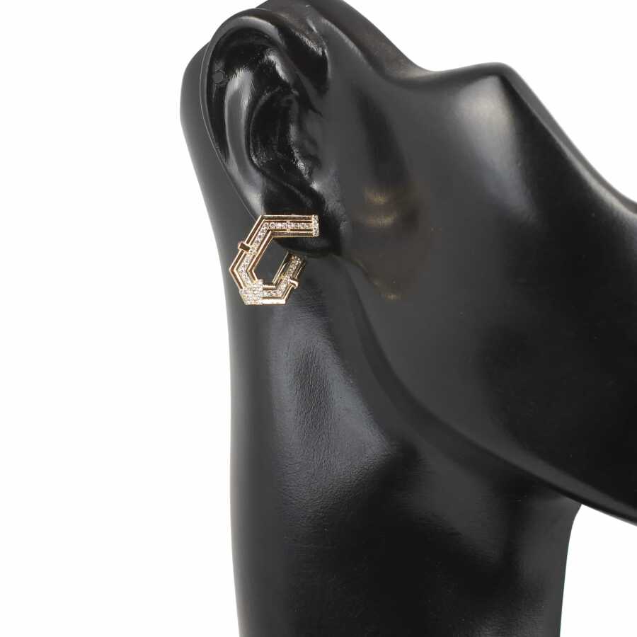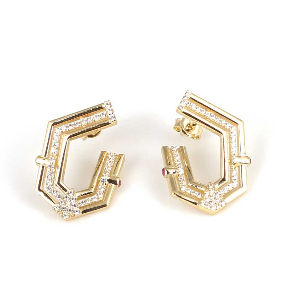 Küpe 14 ayar altından imal edilmiştir. Geometrik model küpenin arkası çivi şeklindedir. Küpe 2,3 cm'ye 1,6 cm boyutlarındadır. Küpe beyaz zirkon taşlıdır. Ağırlığı 3,71 gramdır. Verilen gramlar yaklaşıktır, değişebilir.