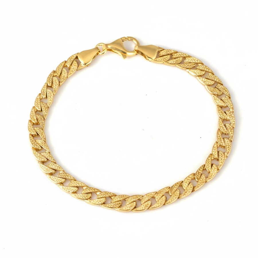 14 ayar altındır. Gurme zincir model bileklik 19 cm uzunluğundadır. Bileklik 0,6 mm'ye 0,8 mm boyutlarındaki desenli halkalardan oluşur. Altın bileklik 14,66 gram ağırlığındadır.