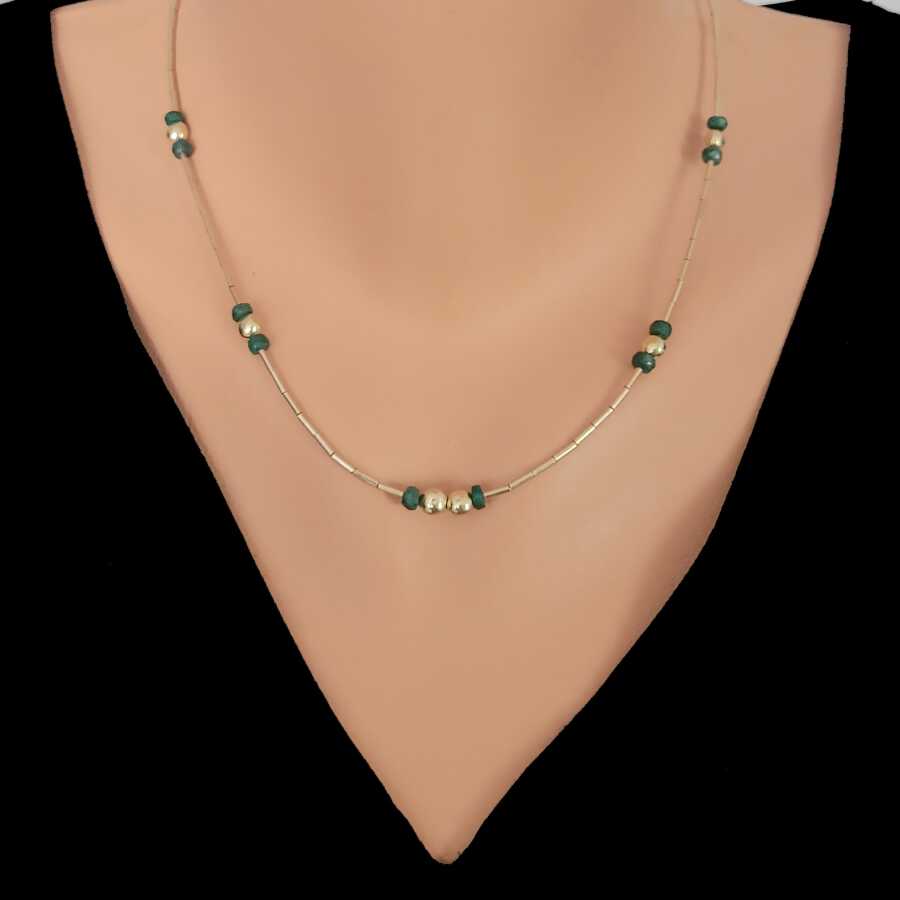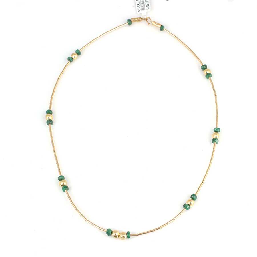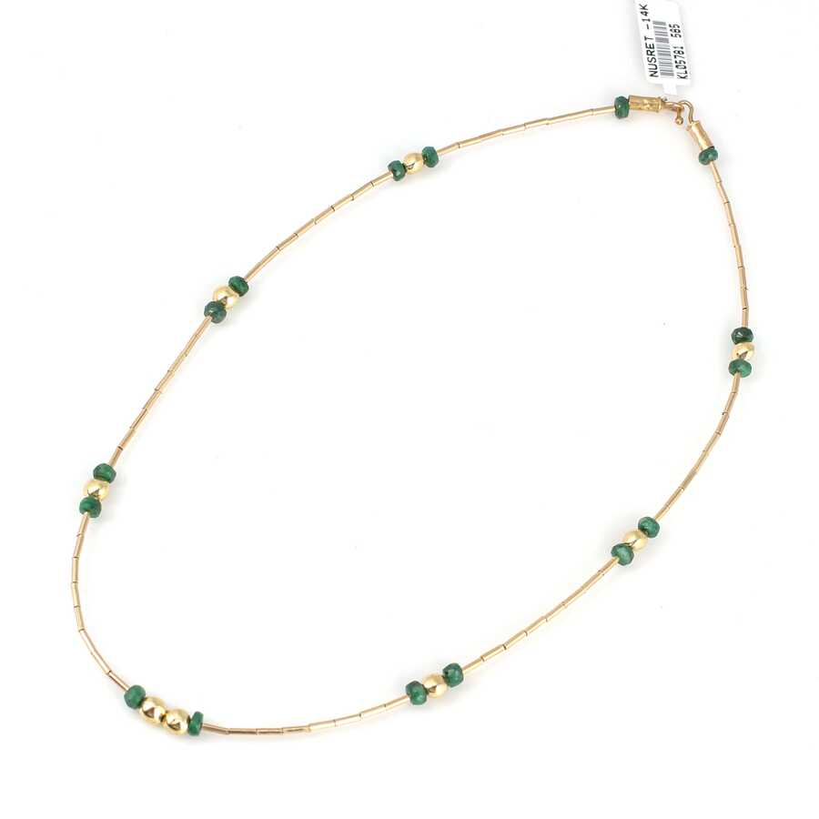 Notify me when its in stock Altın kolye 14 ayar altından üretilmiştir. Şarnel dizi model kolye 43 cm uzunluğundadır. Şarnel boruların aralarına has taşlar eklenerek tasarlanmıştır. Kolye zümrüt taşlıdır. Ağırlığı 10,26 gramdır. Verilen gramlar yaklaşıktır, değişebilir.