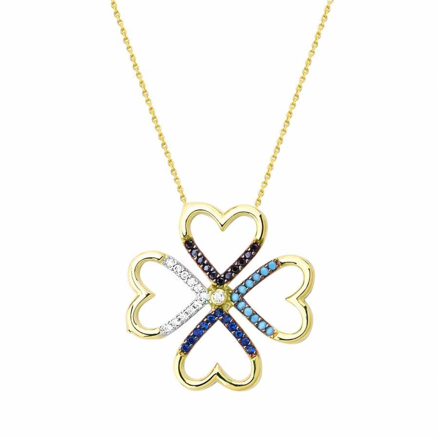 14 Ayar Altın Kalpli Yonca Kolye