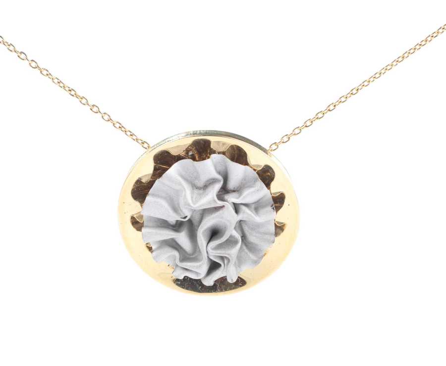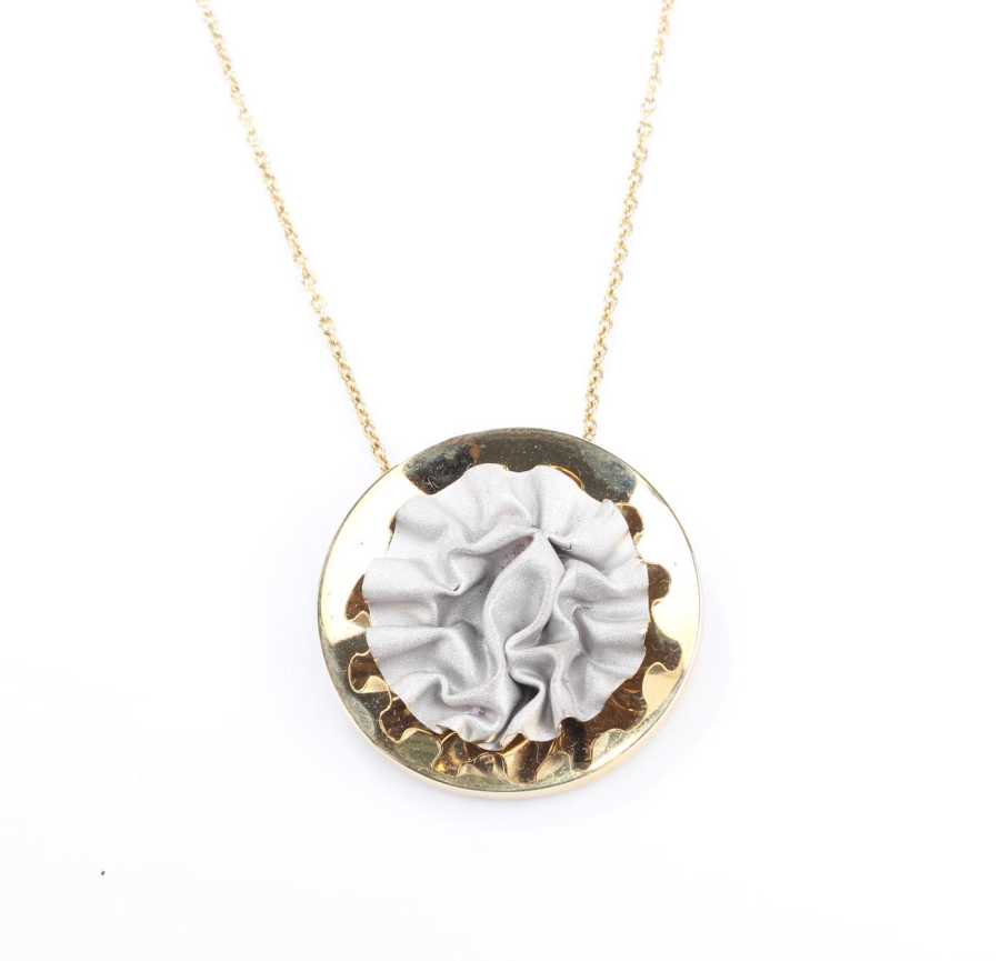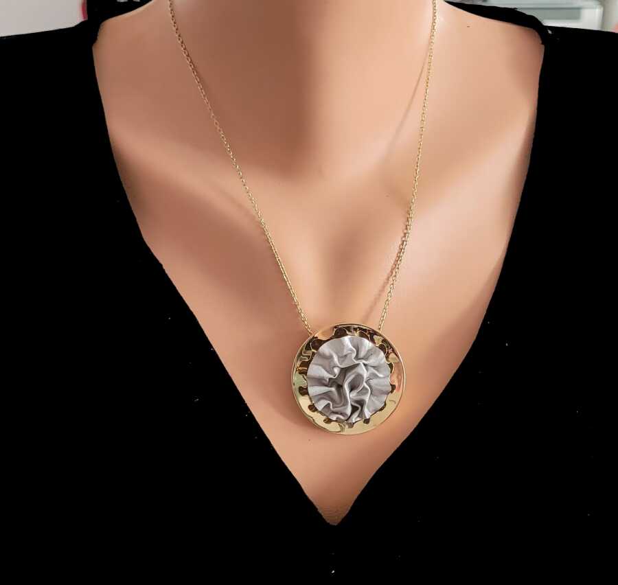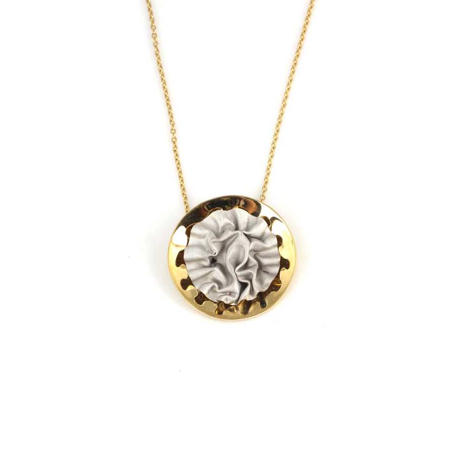 Altın kolye 14 ayar altından üretilmiştir. Kırışık model kolye 4 cm çapındadır. Çift renkli kolye 42 cm uzunluğundadır. Kolye taşsızdır. Ağırlığı 21,01 gramdır. Verilen gramlar yaklaşıktır, değişebilir.