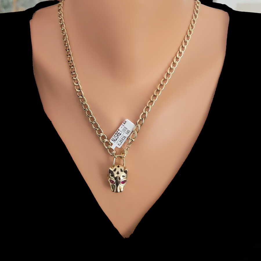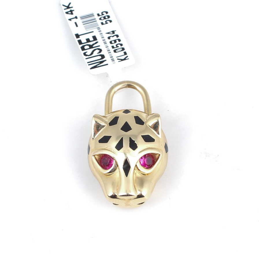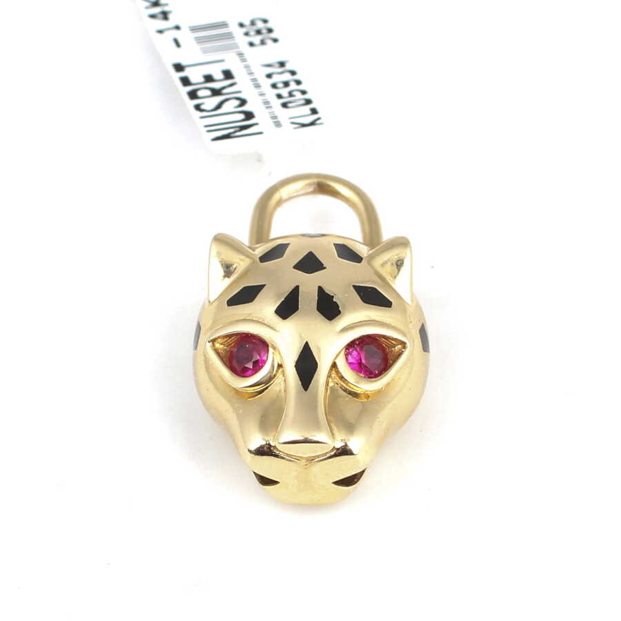 Kolye ucu 14 ayar altından imal edilmiştir. Panter şeklindeki kolye ucu 2,7 cm'ye 1,7 cm boyutlarındadır. Kolye ucu kırmızı zirkon taşlıdır. Ağırlığı 7,04 gramdır.