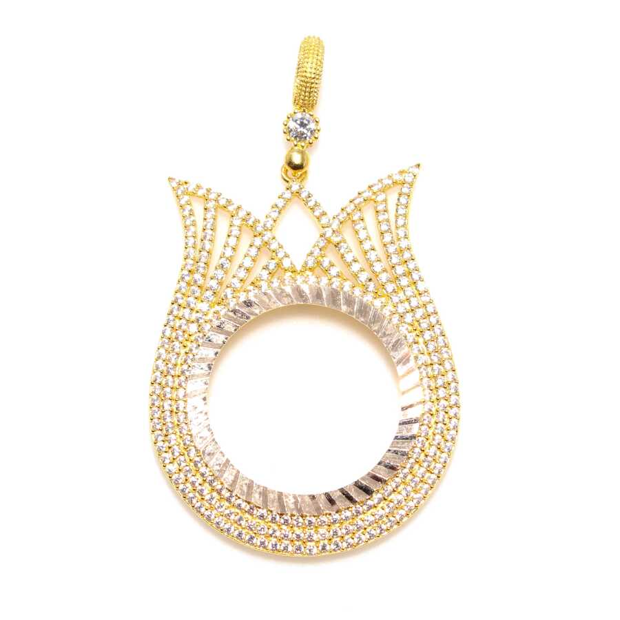 Notify me when its in stock Kolye ucu 14 ayar altından imal edilmiştir. Lale model kolye ucu 5,5 cm'ye 3,2 cm boyutlarındadır. Çerçeve içerisindeki tırnaklar ile çeyrek, yarım, tam, ata lira veya Reşat altınınızı kendiniz takabilirsiniz. Zincir dahil değildir. Çerçeve zirkon taşlıdır. Kolye ucu 6,17 gram ağırlığındadır.