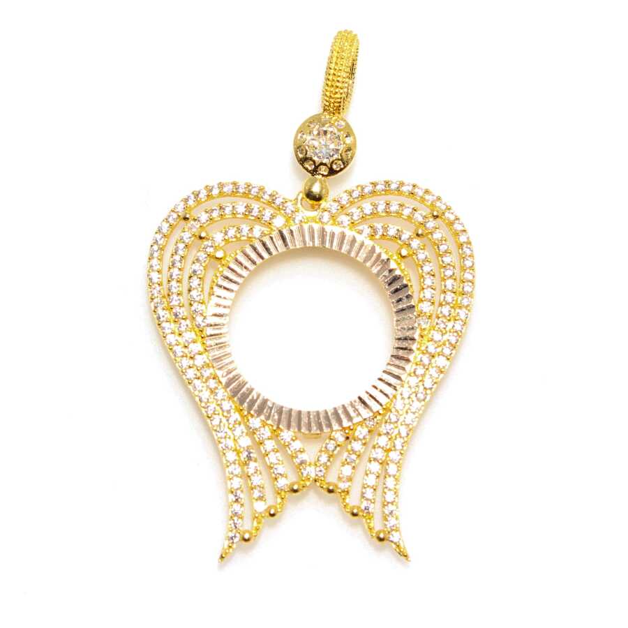 Notify me when its in stock Kolye ucu 14 ayar altından imal edilmiştir. Ata, Reşat yada yarım altın çerçevesi model kolye ucu 5 cm'ye 3 cm boyutlarındadır. Melek kanadı model çerçeve içerisindeki tırnaklar ile çeyrek, yarım, tam, ata lira veya Reşat altınınızı kendiniz takabilirsiniz. Zincir dahil değildir. Çerçeve zirkon taşlıdır. Kolye ucu 4,62 gram ağırlığındadır.