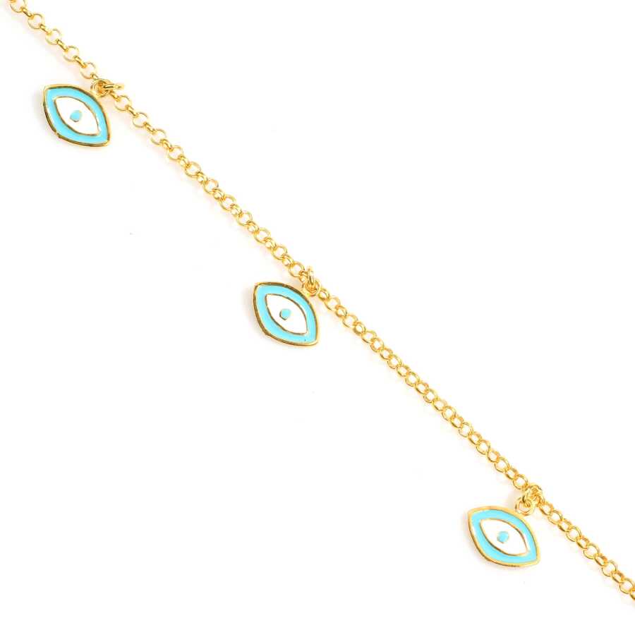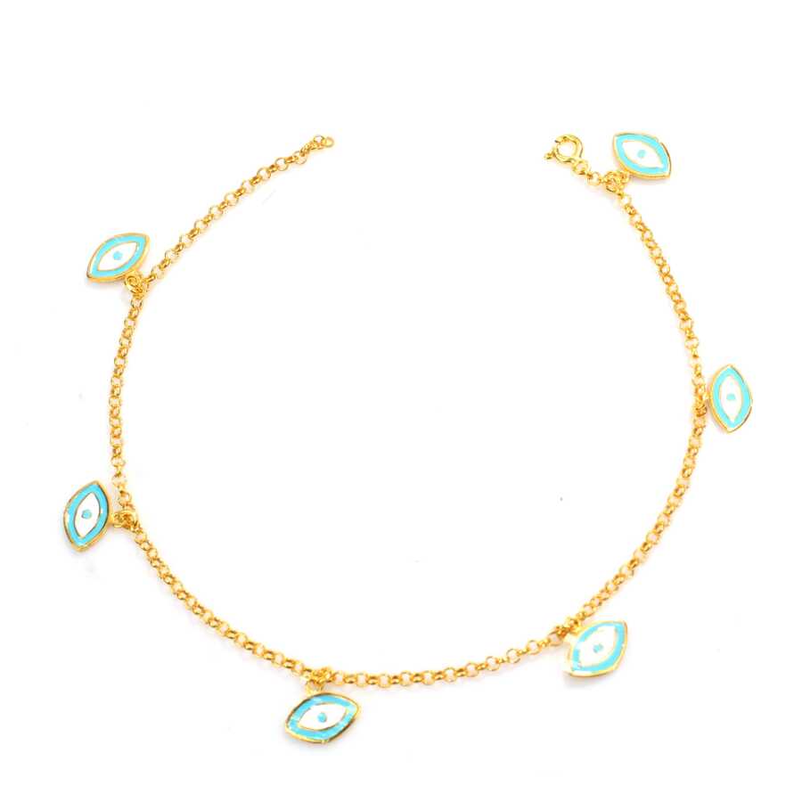 14 Ayar Altın Mineli Göz Boncuklu Halhal