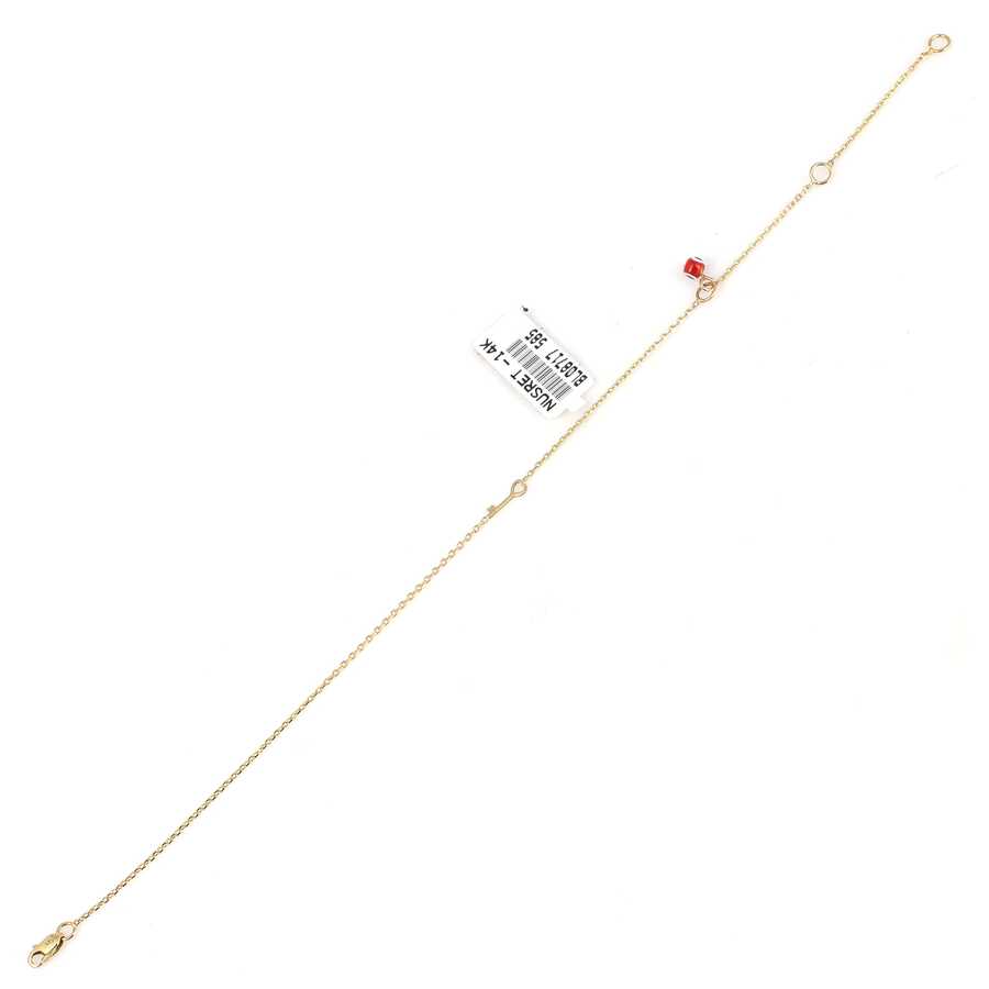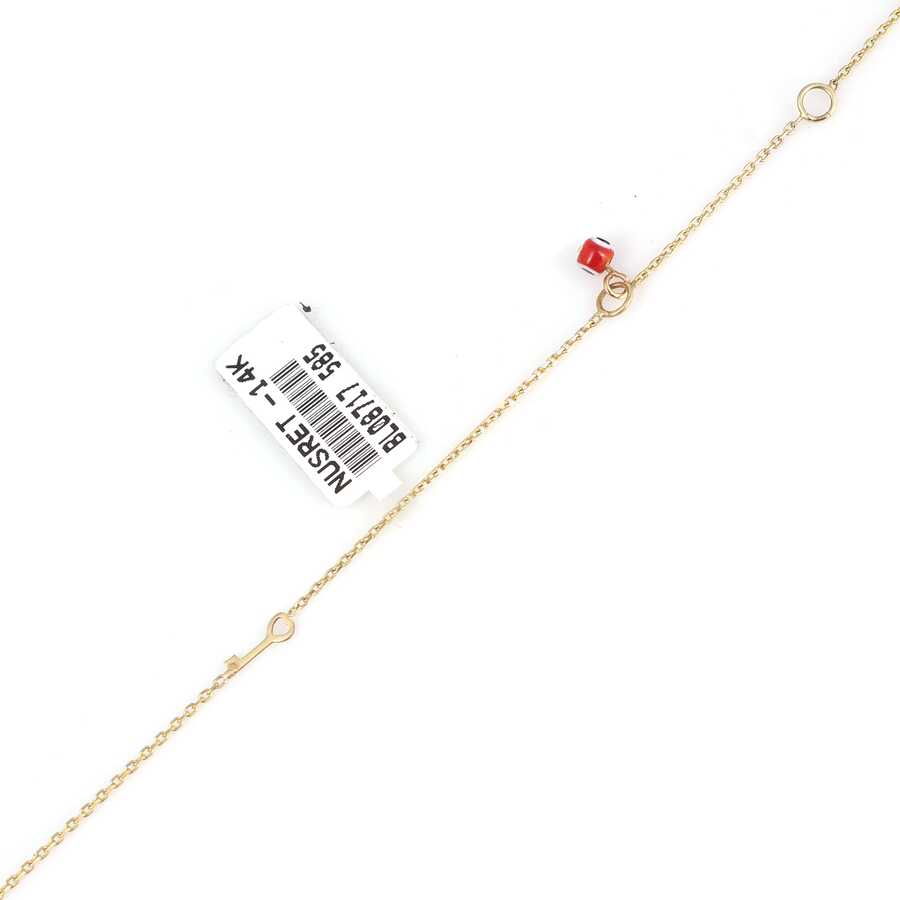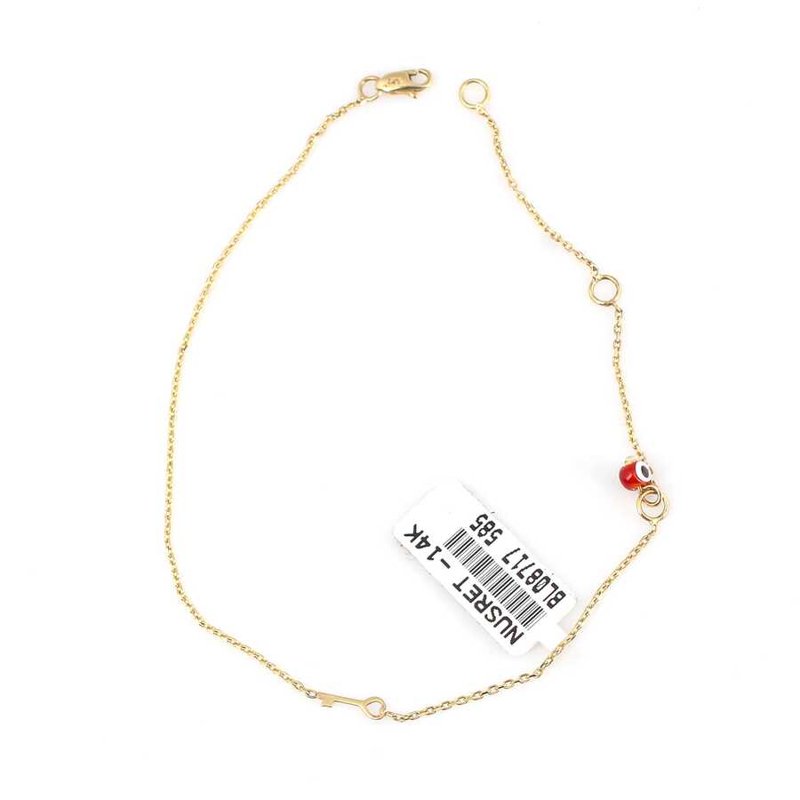 14 Ayar Altın Minik Anahtar Ve Göz Boncuklu İnce Zincir Bileklik