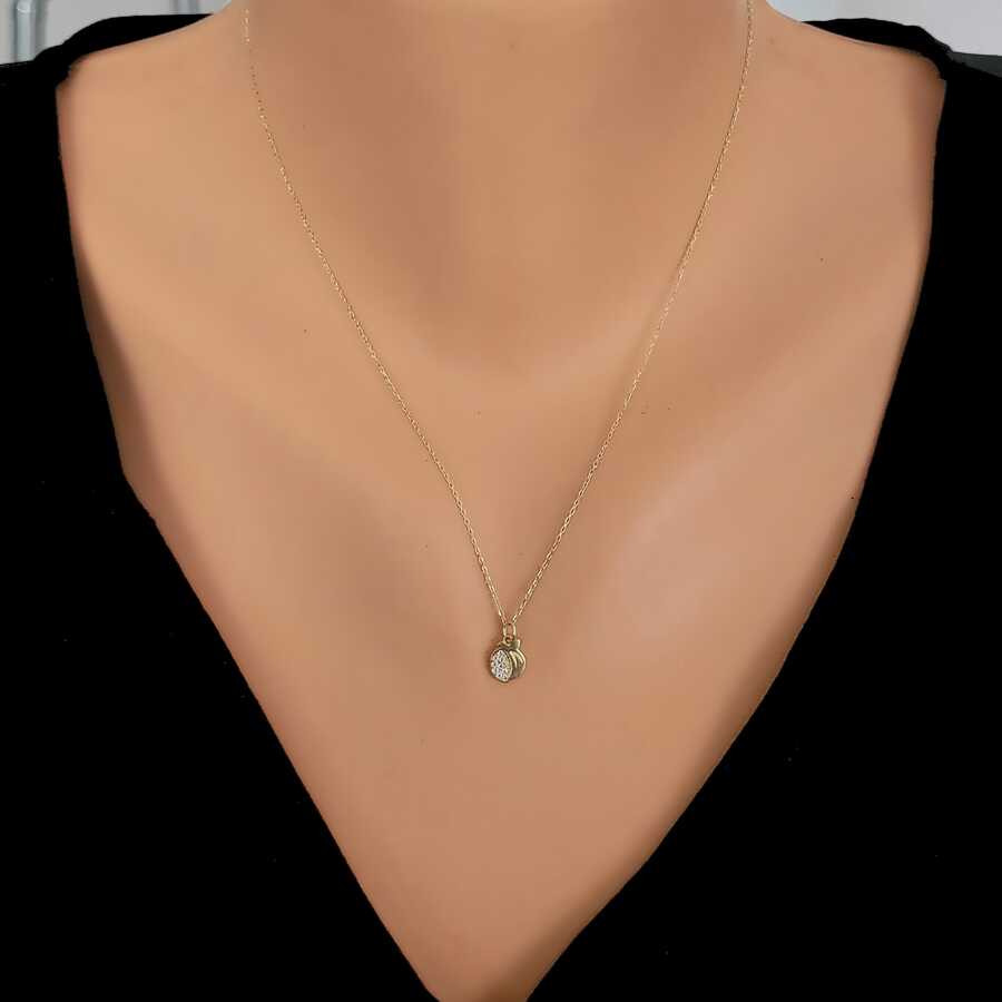 Altın kolye 14 ayar altından üretilmiştir. Nar model kolye 42 cm uzunluğundadır. Kolye 0,65 cm boyutlarındadır. Kolye zirkon taşlıdır. Ağırlığı 1,37 gramdır. Verilen gramlar yaklaşıktır, değişebilir.