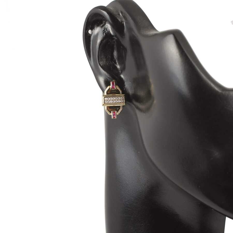 Gelince Haber VerKüpe 14 ayar altından imal edilmiştir. Geometrik model küpenin arkası mengeçlidir. Küpe 1,9 cm'ye 1,2 cm boyutlarındadır. Küpe dikdörtgen yakut ve beyaz zirkon taşlıdır. Ağırlığı 3,52 gramdır. Verilen gramlar yaklaşıktır, değişebilir.
