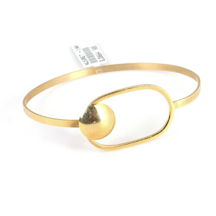 Bilezik 14 ayar altından imal edilmiştir. Geometrik şekilli model tel bilezik 6,5 cm çapındadır. Yuvarlak parça ile oval model kilitli bileziktir. Bilezik taşsızdır. Bilezik 8,59 gram ağırlığındadır.