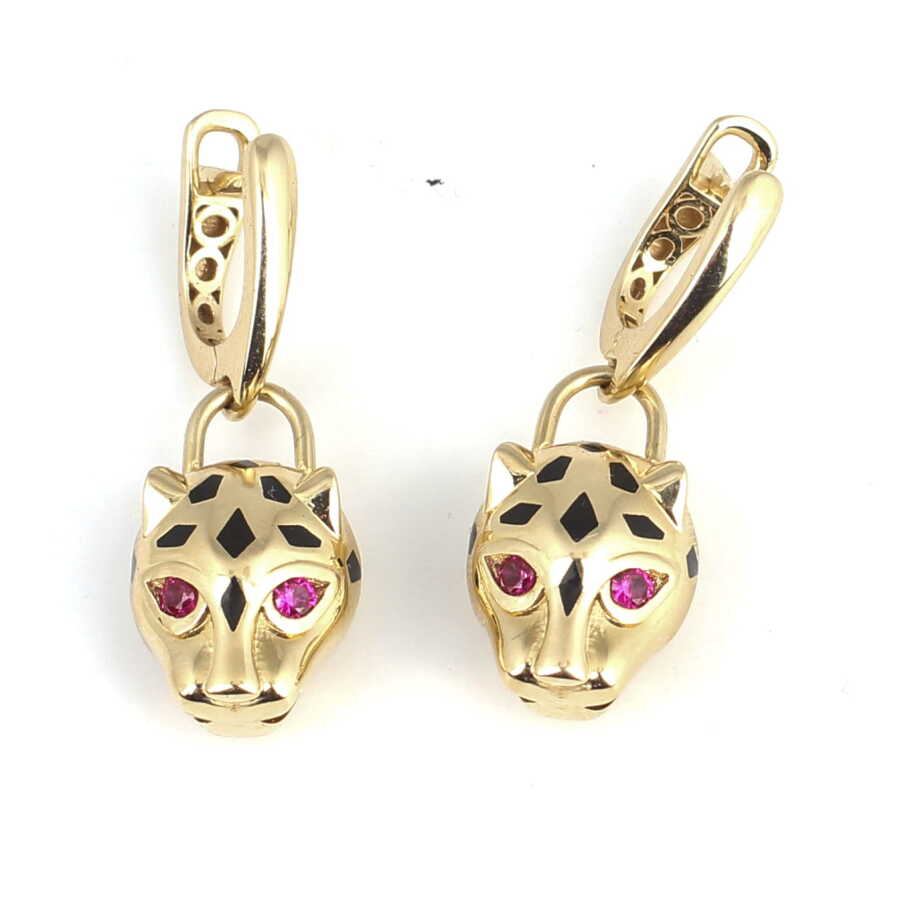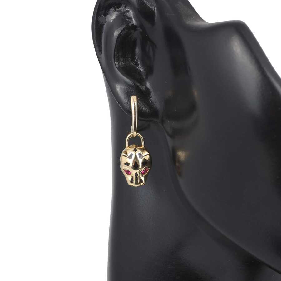 Küpe 14 ayar altından imal edilmiştir. Panter model küpe 3,2 cm'ye 1,1 cm boyutlarındadır. Küpe zirkon taşlıdır. Ağırlığı 7,28 gramdır.