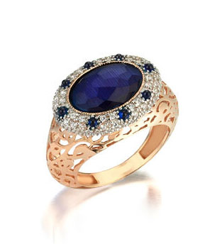 14 Ayar Altın Safir Taşlı Desenli Yüzük
