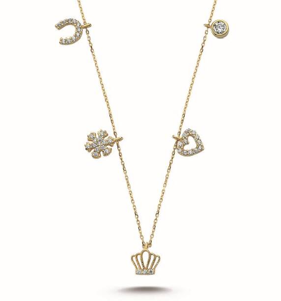 14 Ayar Altın Taç, Kalp, Kar tanesi Şans Kolyesi