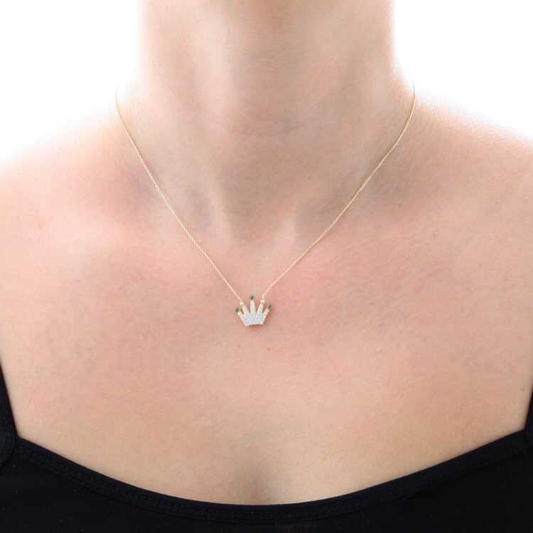 Altın kolye 14 ayar altından üretilmiştir. Taç model Kolye 42 cm uzunluğundadır. Kolye zirkon taşlıdır. Ağırlığı 3,25 gramdır. Verilen gramlar yaklaşıktır, değişebilir.