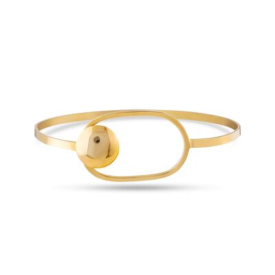 Bilezik 14 ayar altından imal edilmiştir. Geometrik şekilli model tel bilezik 6,3 cm çapındadır. Yuvarlak parça ile oval model kilitli bileziktir. Bilezik taşsızdır. Bilezik 8,59 gram ağırlığındadır.