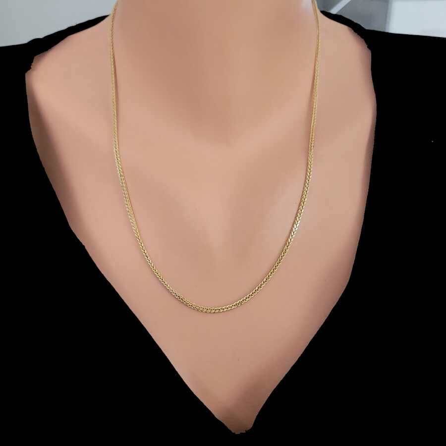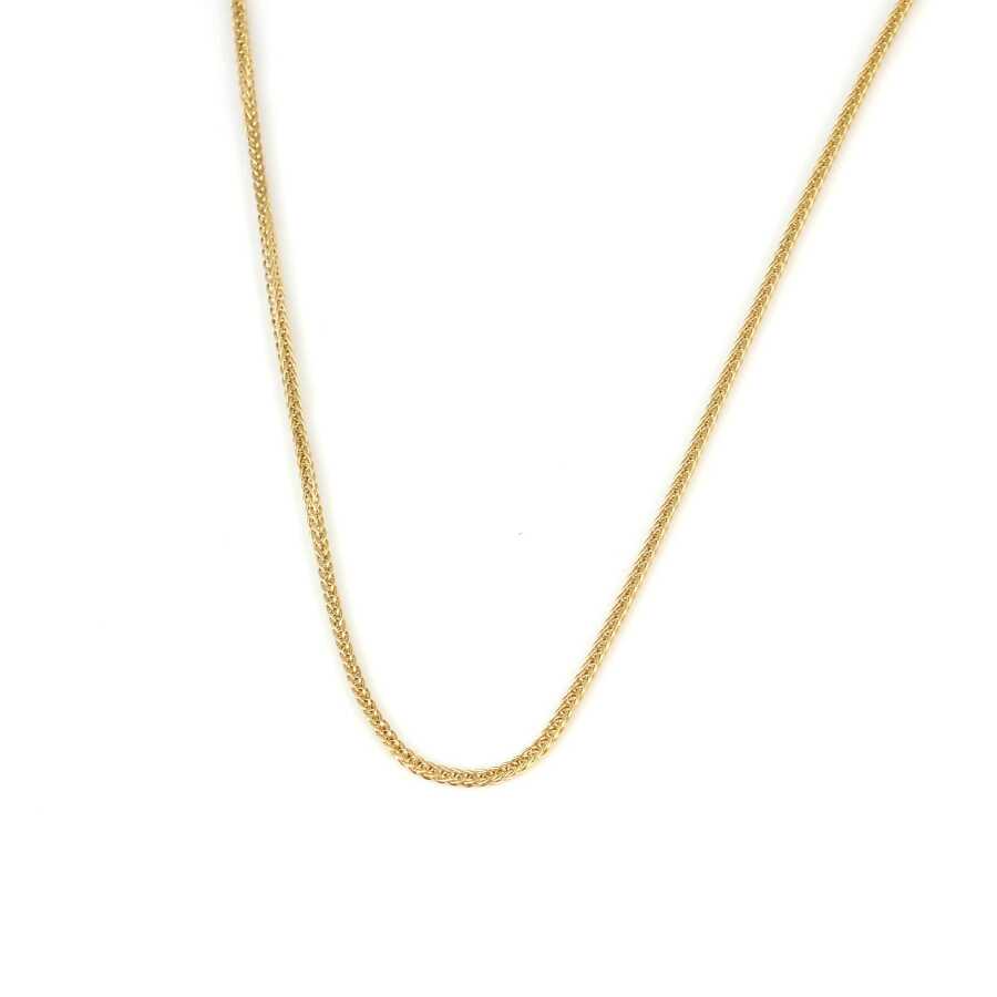 Kolye 14 ayar altından imal edilmiştir. Tilki kuyruğu zincir kolye 48 cm uzunluğundadır. Kolyenin 0,10 cm boyutlarındadır. Kolye taşsızdır. Ağırlığı 3,72 gramdır.