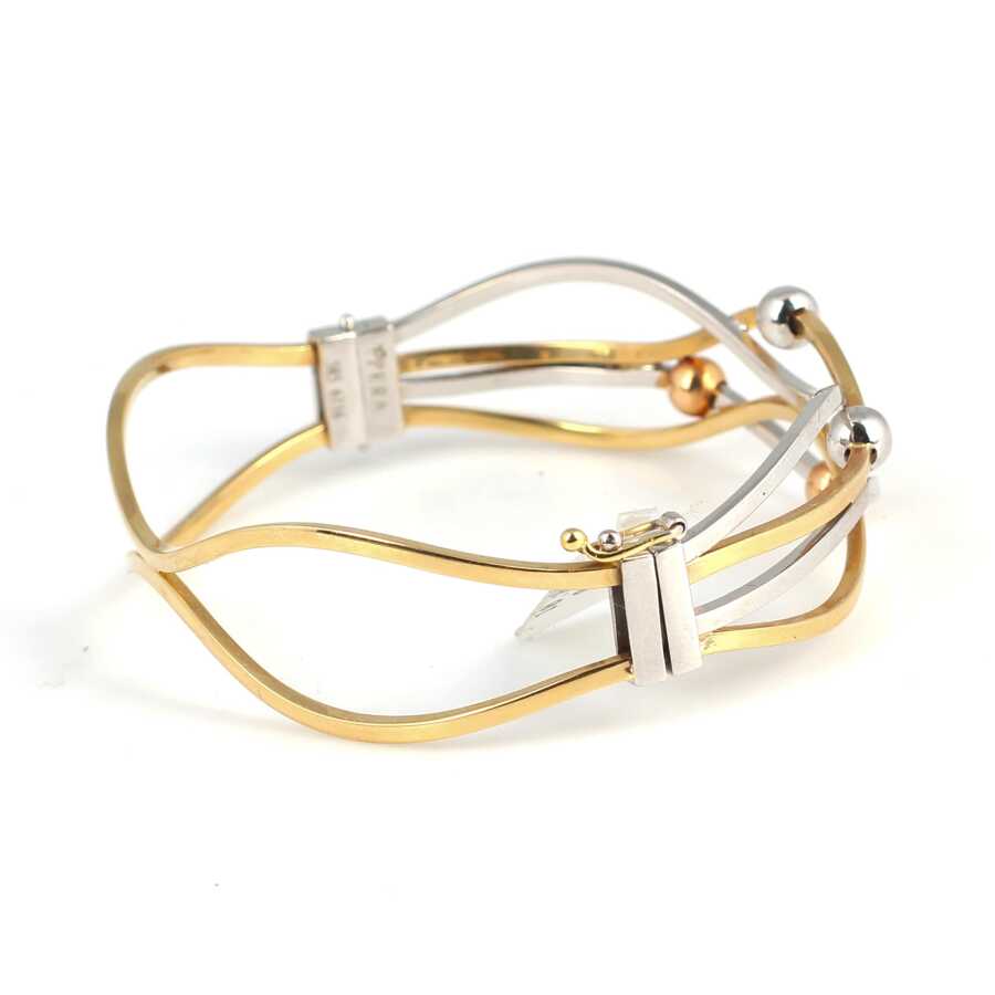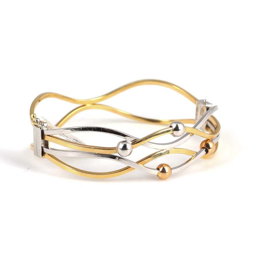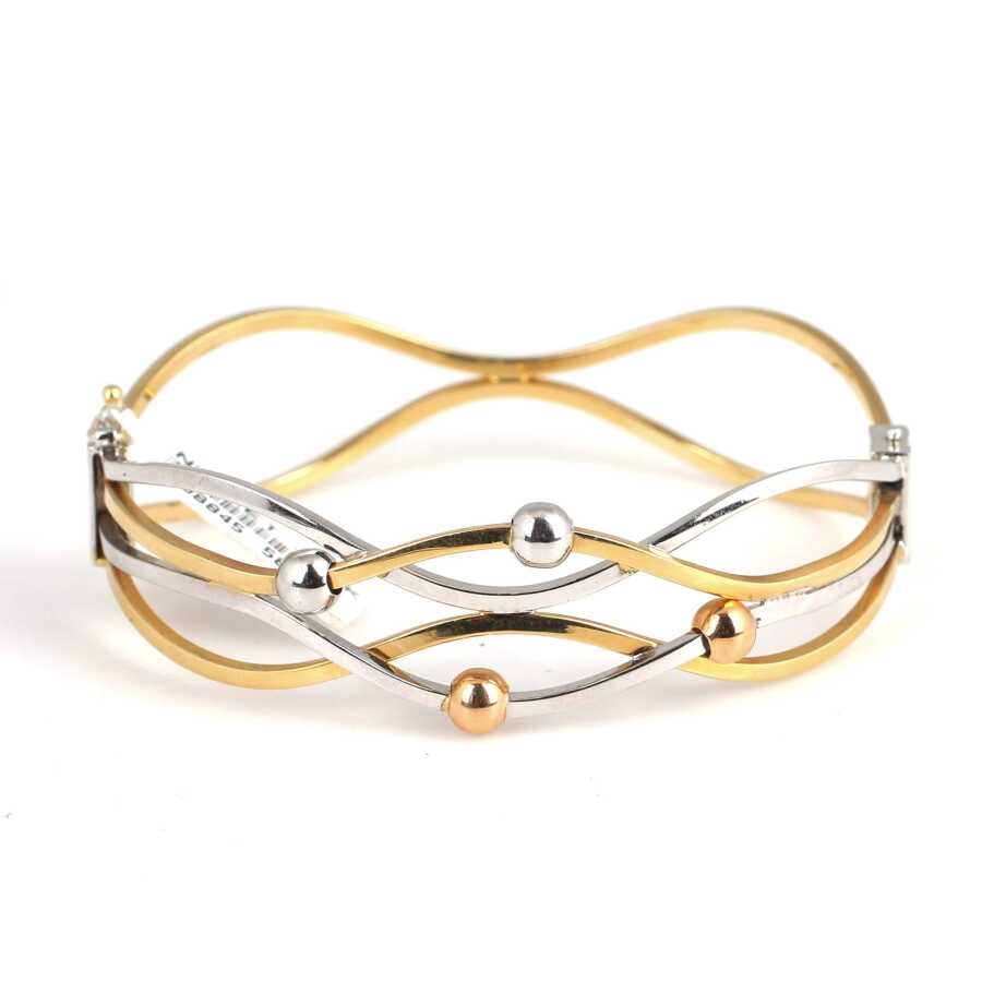 Bilezik 14 ayar altından imal edilmiştir. Bilezik çift renklidir. Bilezik 6 cm çapındadır. Bilezik 1,8 cm enindedir. Ağırlığı 10,39 gramdır.