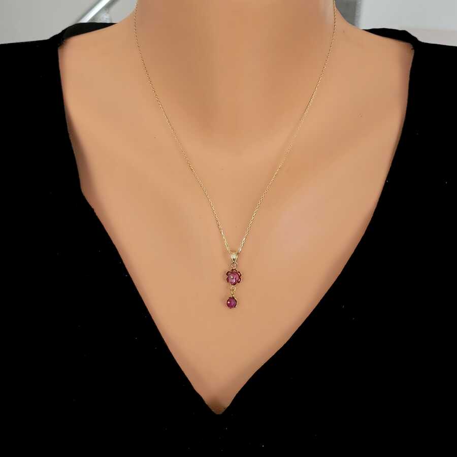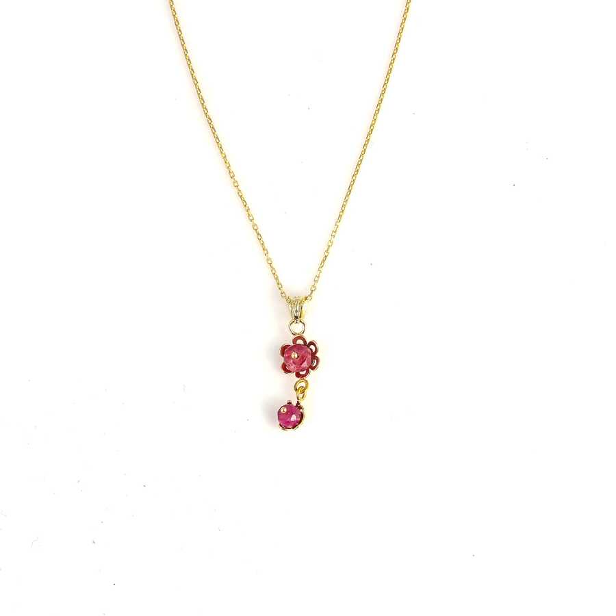 14 Ayar Altın Yakut Taşlı Çiçek Kolye