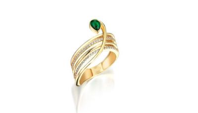 14 Ayar Altın Yeşil Damla Taşlı Yüzük