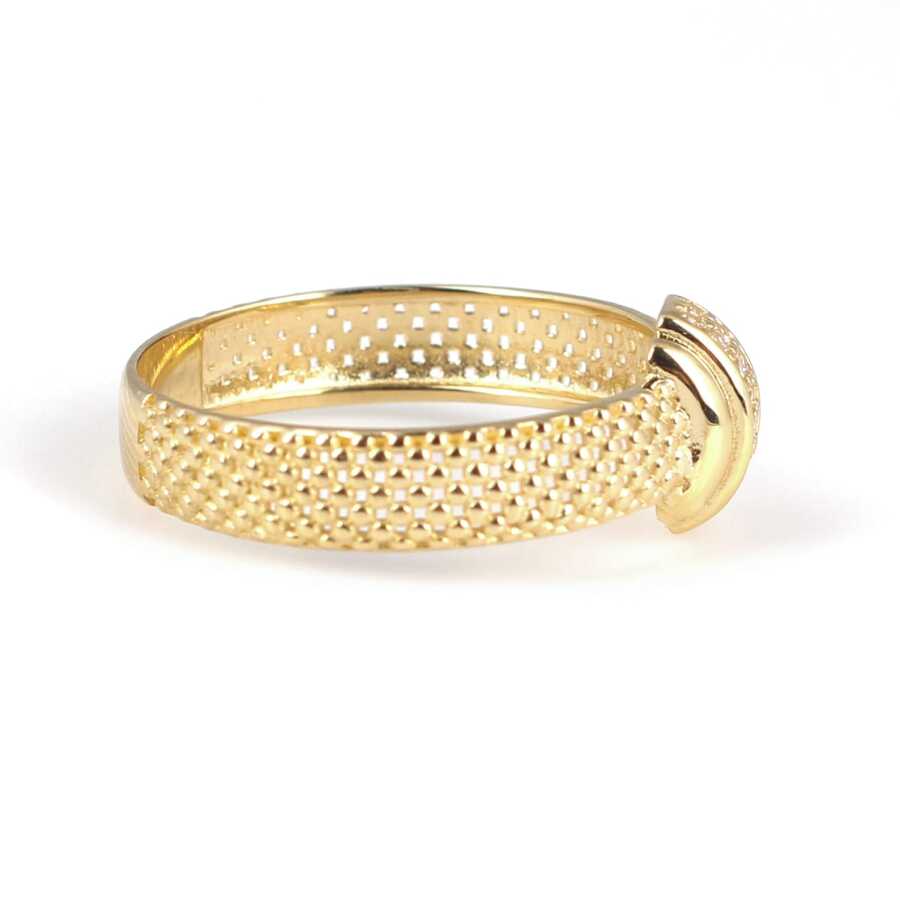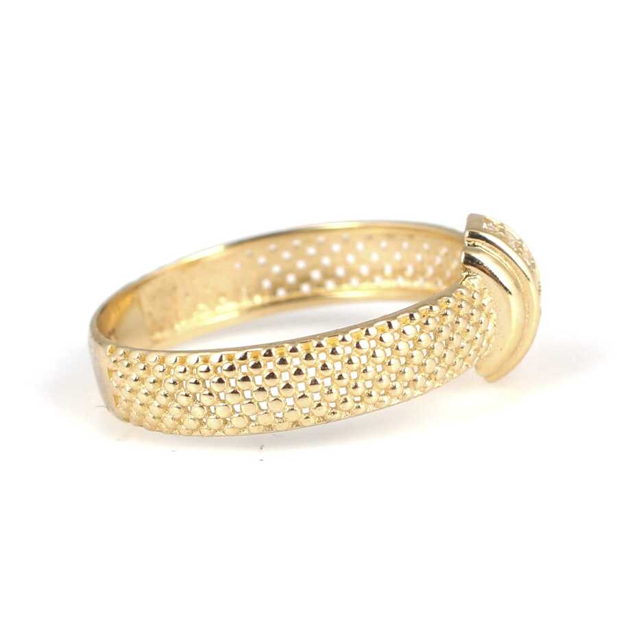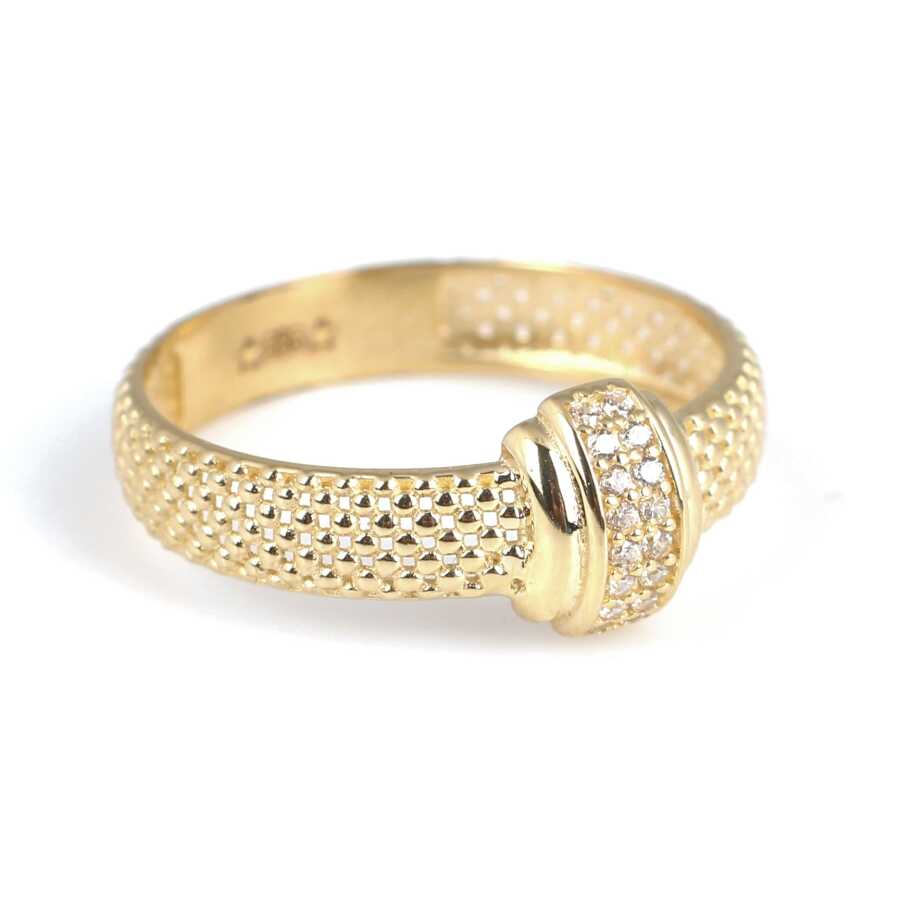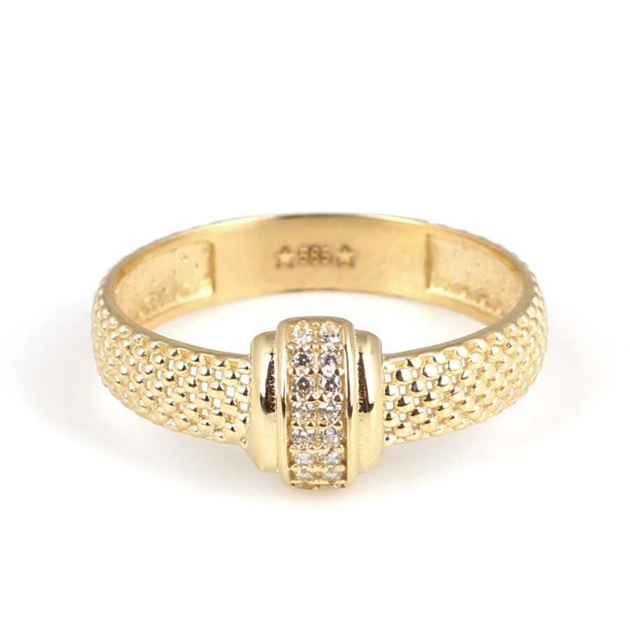 Gelince Haber Ver Yüzük 14 ayar altından üretilmiştir. Yüzüğün üst kısmı 0,9 cm boyutlarındadır. Yüzü üzerinde yarım yuvarlak şekil vardır. Yüzük zirkon taşlıdır. Resimdeki yüzük 20 ölçüdür, ancak tüm ölçüler özel olarak yapılabilmektedir. Ağırlığı 2,37 gramdır. Verilen gramlar yaklaşıktır, değişebilir.
