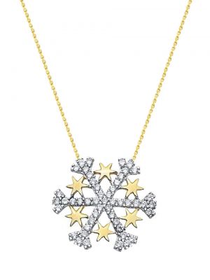 14K Gold Stars Snowflake Necklace