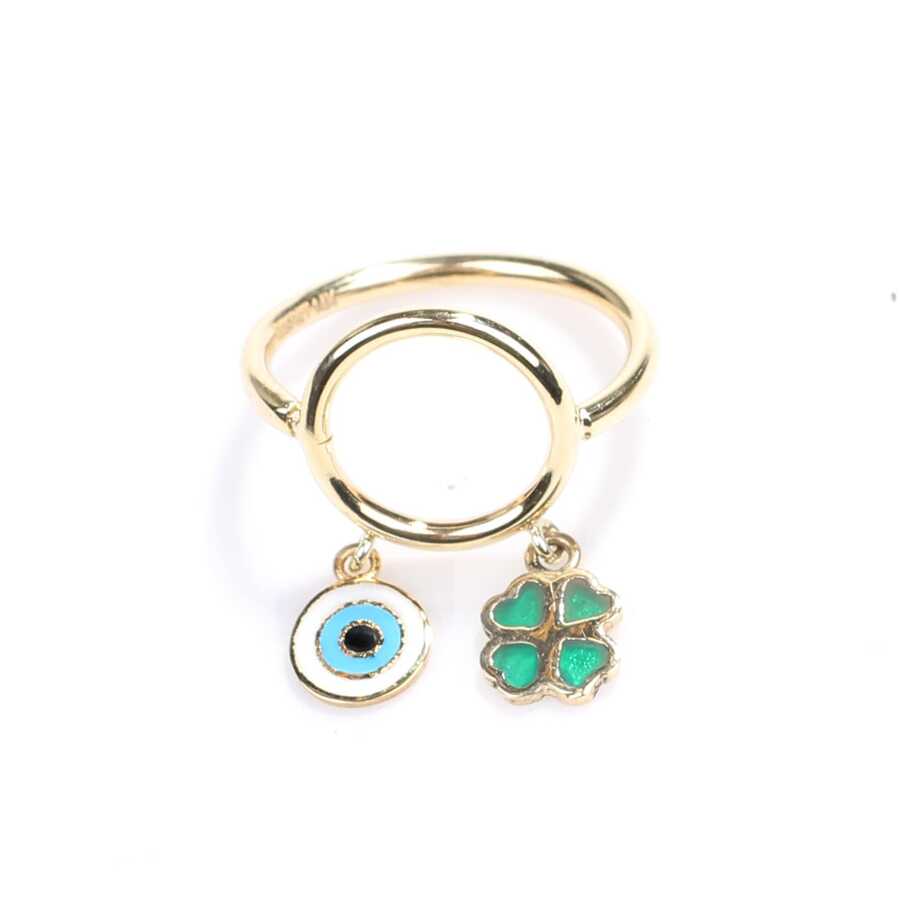 14 Ayar Altın Yonca ve Nazar Boncuğu Modeli Trend Yüzük