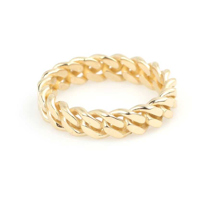 14 ayar altındır. Altın zincir model yüzük 13 numaradır. Fakat istenilen ölçü yapılmaktadır. Yüzüğün üst kısmı 0,4 cm genişliğindedir. Gramı: 3,83 gr