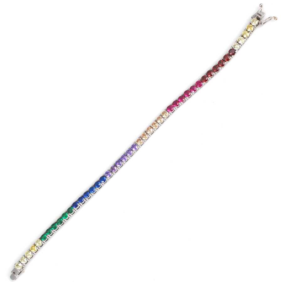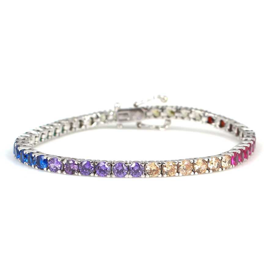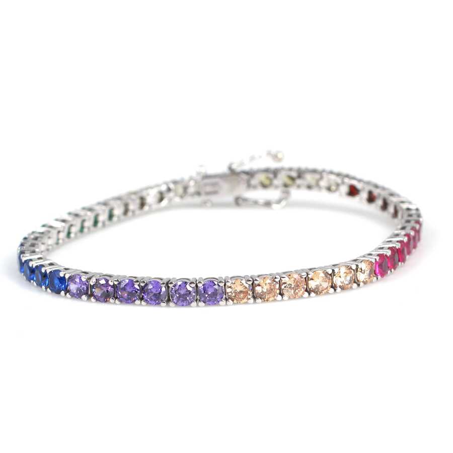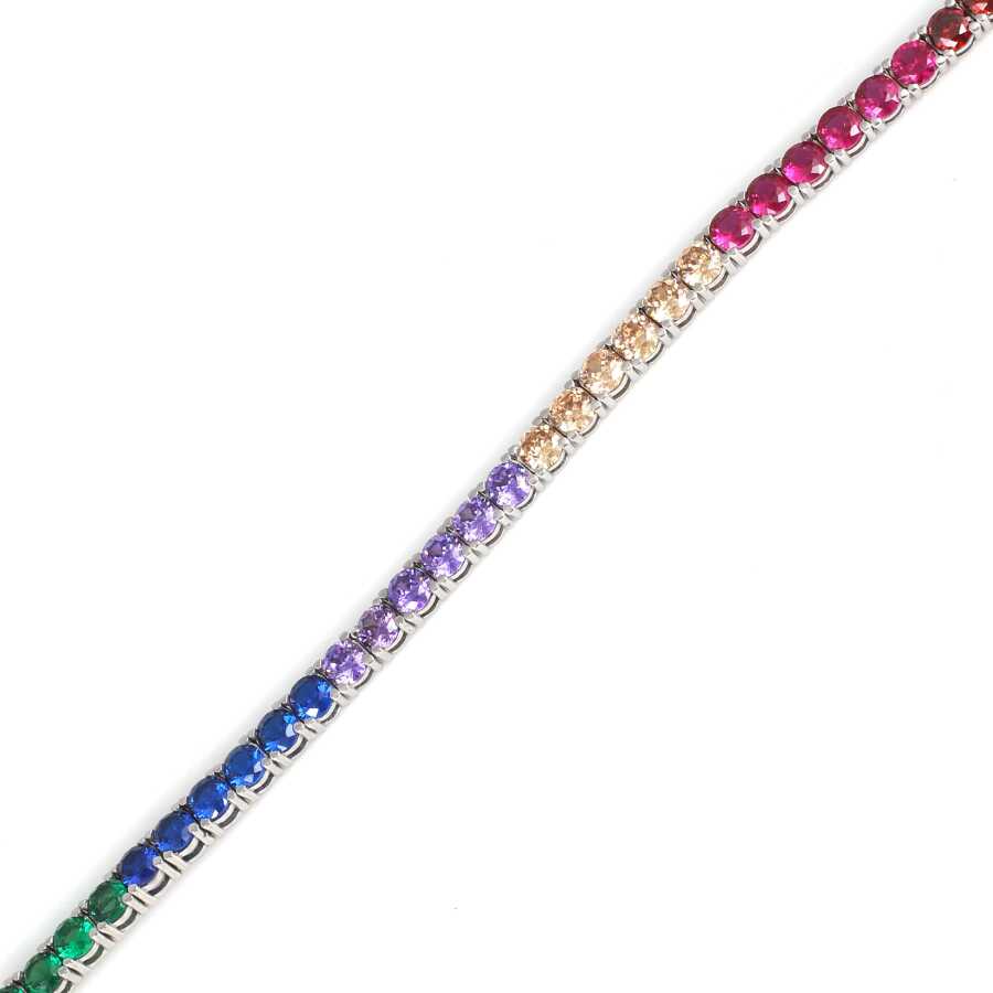 Bileklik 14 ayar altından imal edilmiştir. Suyolu model bileklik 17 cm uzunluğundadır. Bileklik 0,4 cm kalınlığındadır. Bileklik renkli zirkon taşlıdır.Ağırlığı 12,04 gramdır. Verilen gramlar yaklaşıktır, değişebilir.