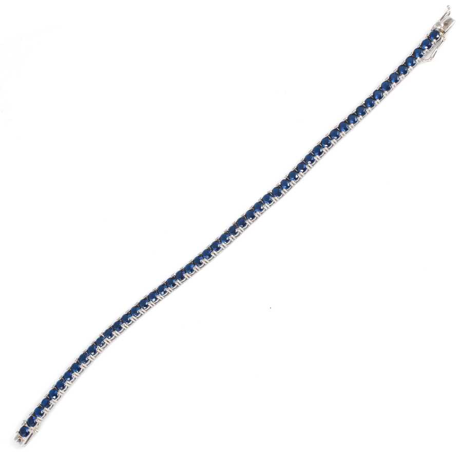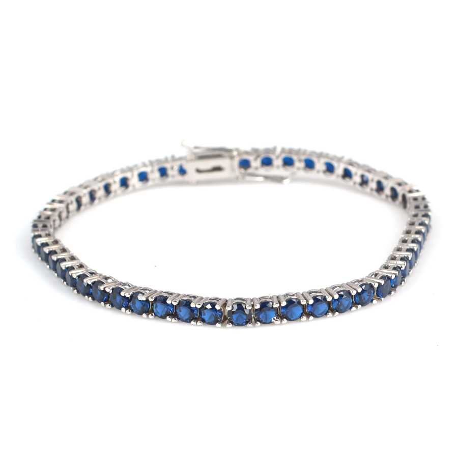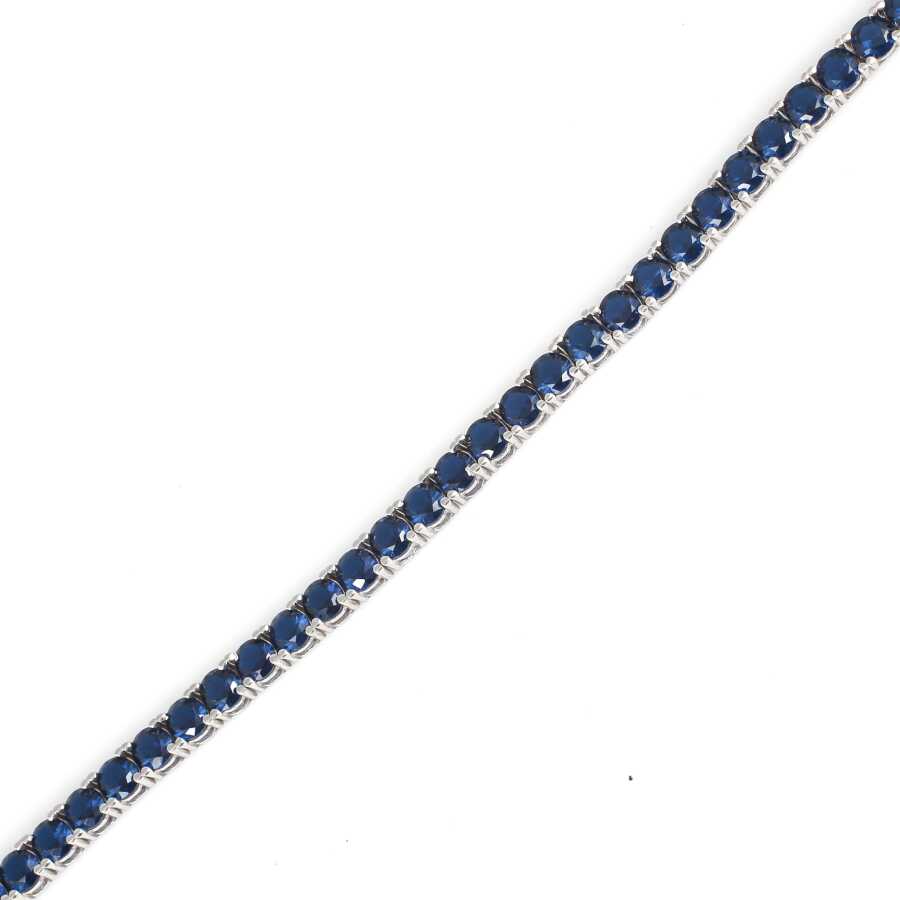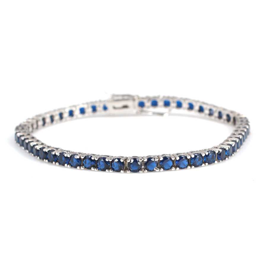 Bileklik 14 ayar altından imal edilmiştir. Suyolu model bileklik 21,5 cm uzunluğundadır. Bileklik 0,4 cm kalınlığındadır. Bileklik safir renk zirkon taşlıdır.Ağırlığı 16,2 gramdır. Verilen gramlar yaklaşıktır, değişebilir.
