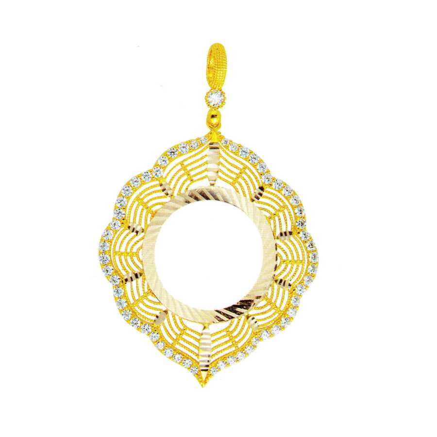 Notify me when its in stock Kolye ucu 14 ayar altından imal edilmiştir. Altın çerçevesi içerisindeki tırnaklar ile çeyrek, yarım, tam, ata lira veya Reşat altınınızı kendiniz takabilirsiniz. Çiçek model kolye ucudur. Zincir dahil değildir. Çerçeve yarım altın için uygundur. Kolye ucu zirkon taşlıdır. Kolye ucu 5,9 gram ağırlığındadır.