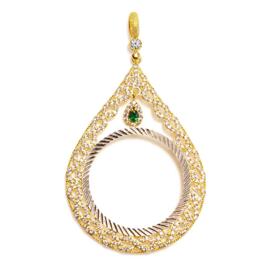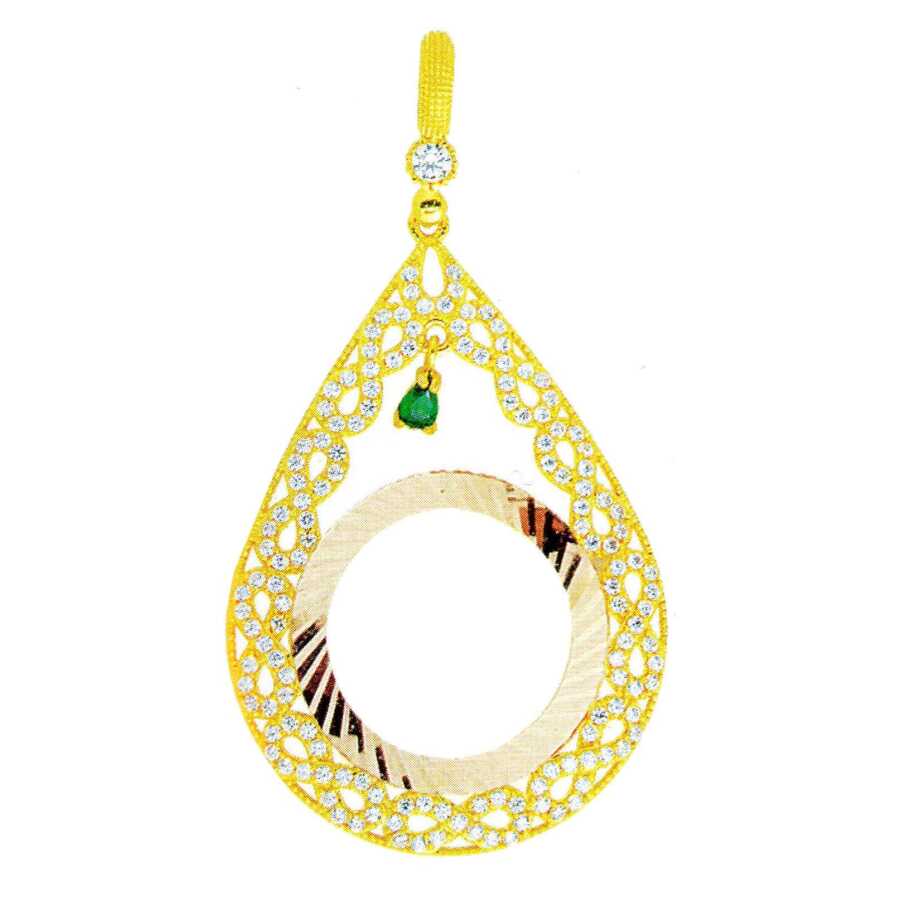 Notify me when its in stock Kolye ucu 14 ayar altından imal edilmiştir. Ata, Reşat yada yarım altın çerçevesi model kolye ucu 7,1 cm'ye 4,0 cm boyutlarındadır. Sonsuzluk model çerçeve içerisindeki tırnaklar ile çeyrek, yarım, tam, ata lira veya Reşat altınınızı kendiniz takabilirsiniz. Zincir dahil değildir. Çerçeve tam altın için uygundur. Kolye ucu zirkon taşlıdır. Kolye ucu 8,3 gram ağırlığındadır.